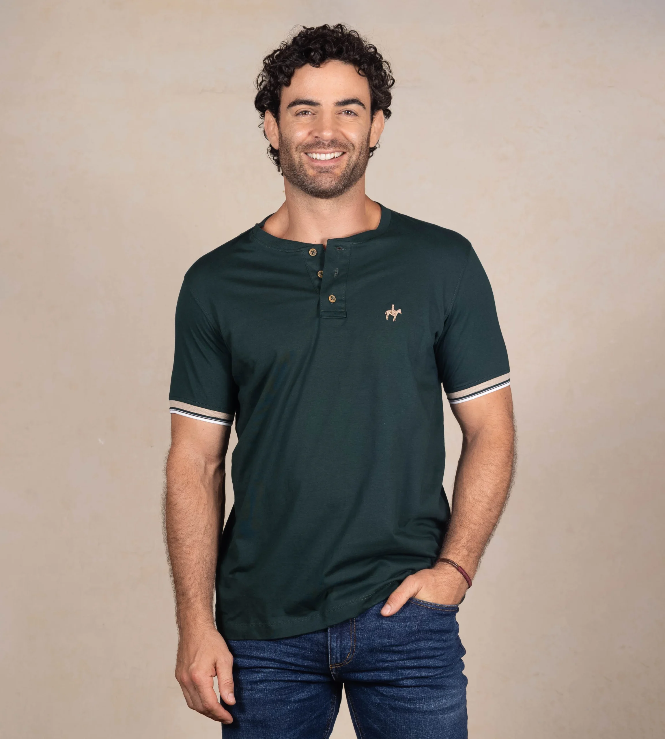 Camiseta F/E Cuello Henley Verde Petróleo Ref. 147011225