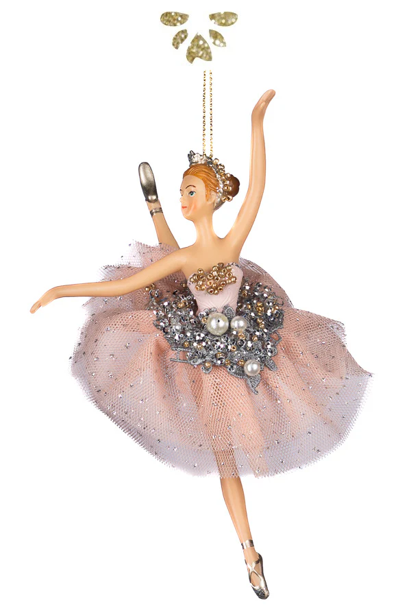 Adorno navideño – Bailarina tul rosado y perlas – jeté