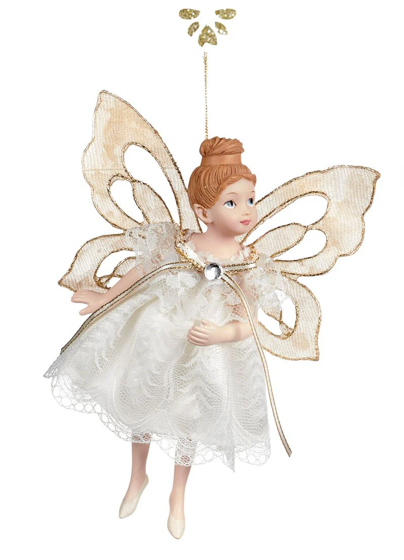 Adorno navideño – hada de encaje oro/crema brillante