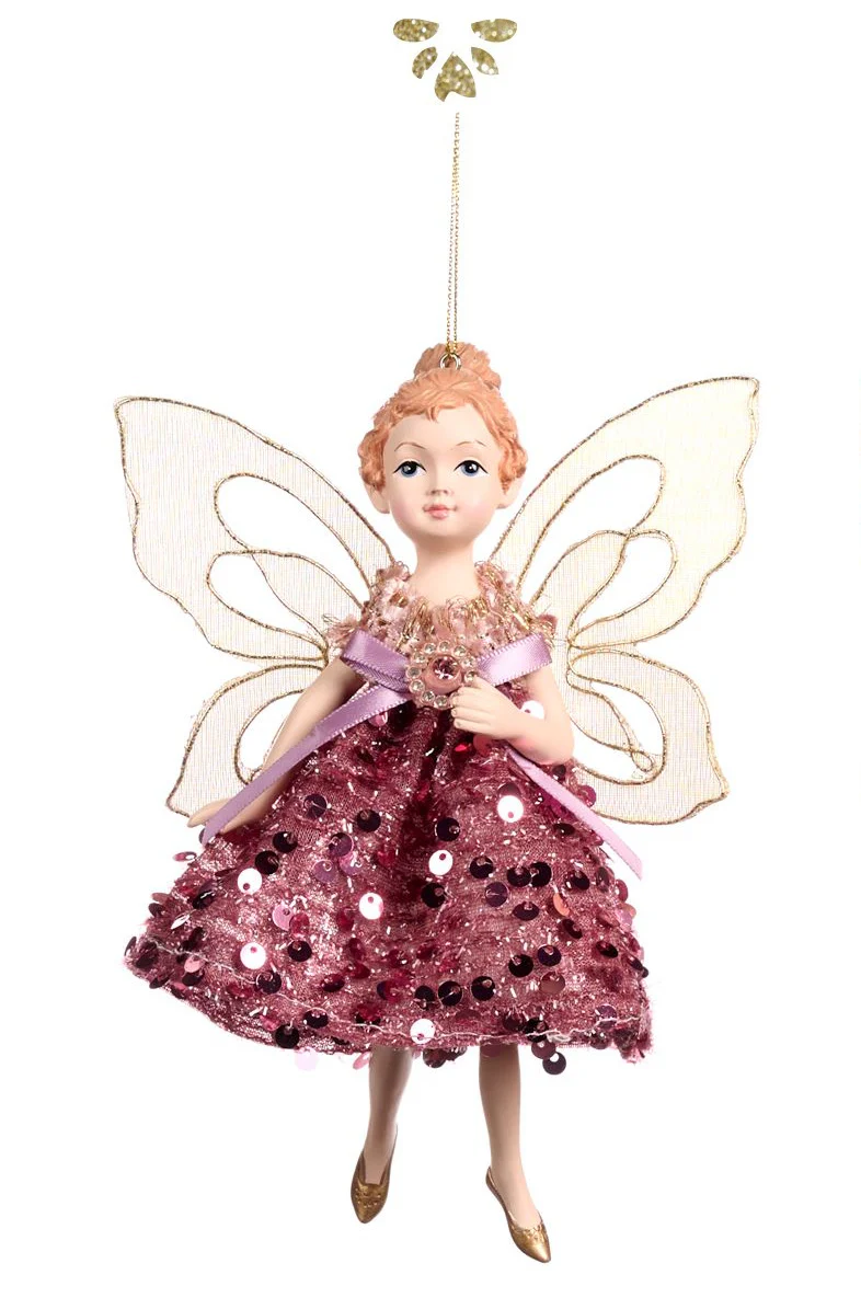 Adorno navideño – hada rosa/oro