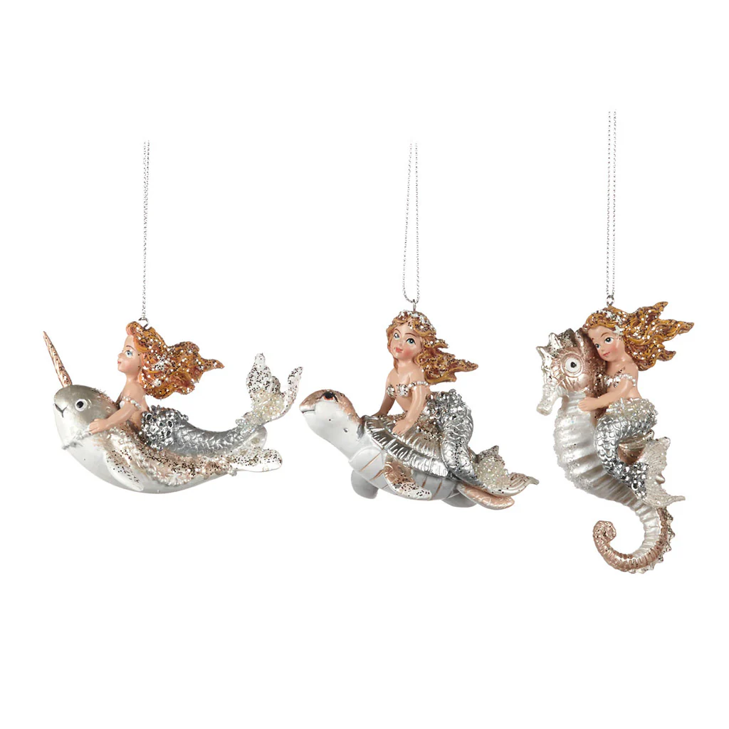 Adorno navideño – sirenita sobre animal marino