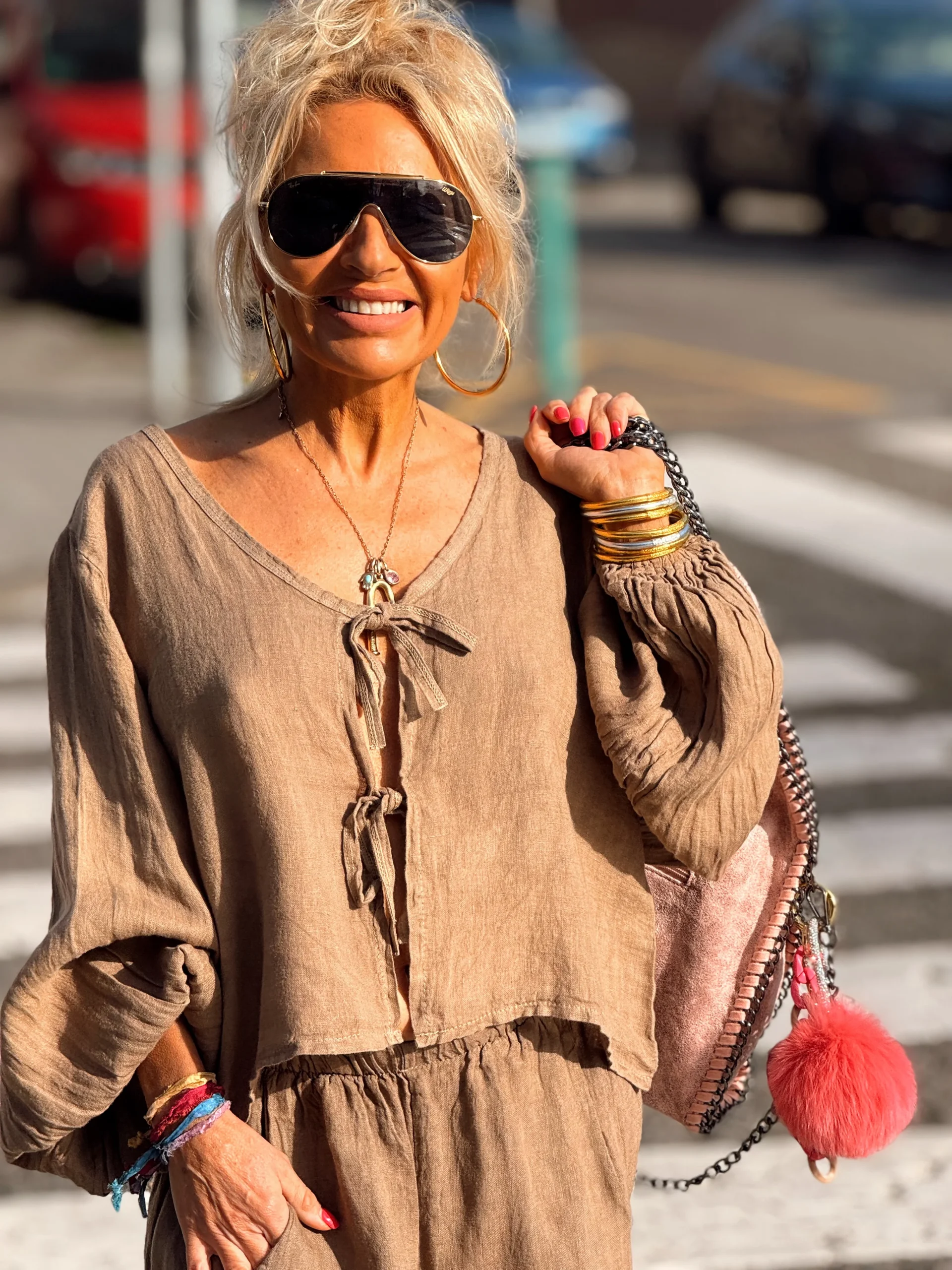 CONJUNTO OVERSIZE TÚNICA-PANTALON AMELIE TOPO-BLANCO