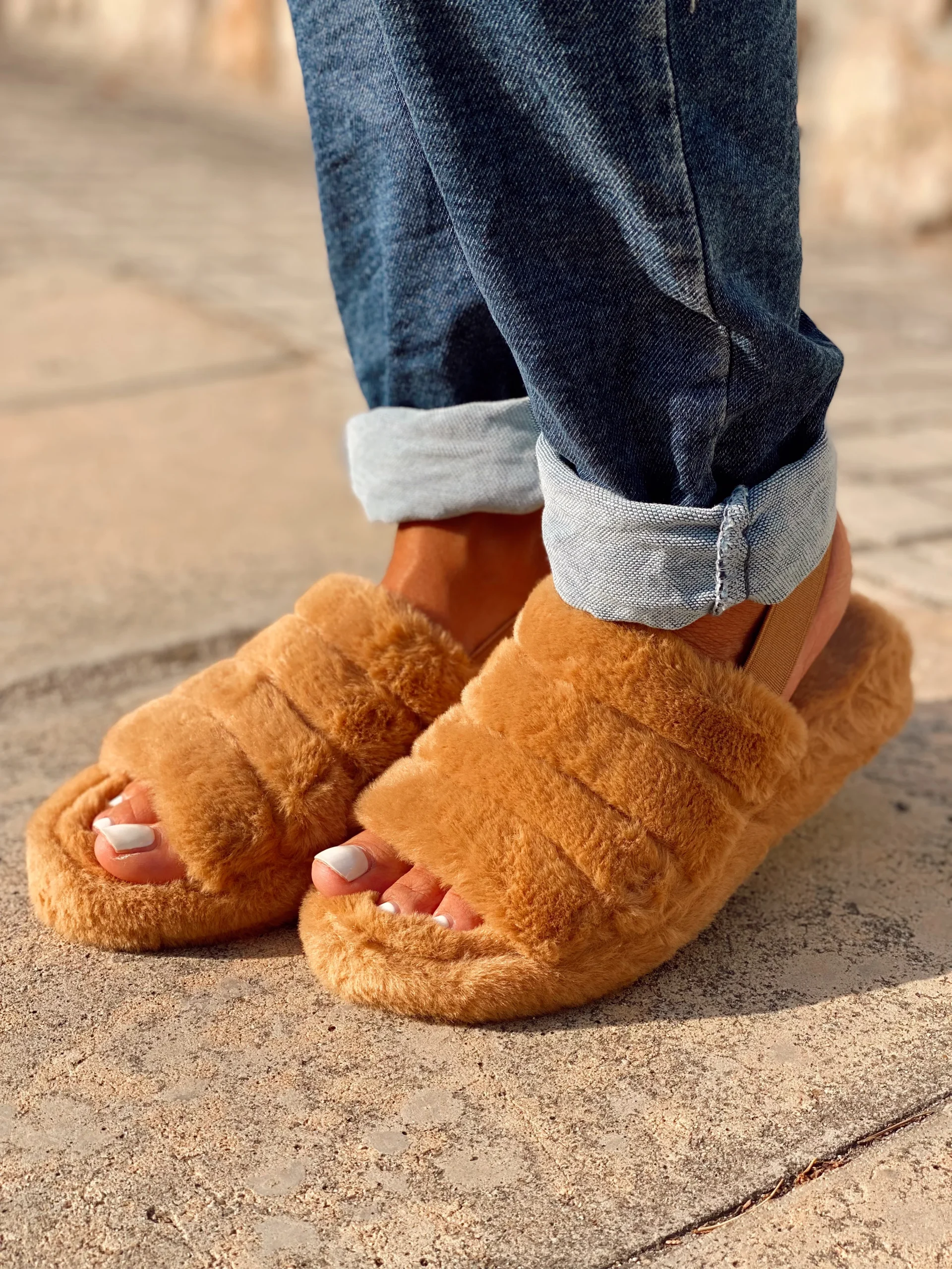 SANDALIAS CON PELO SINTÉTICO CAMEL