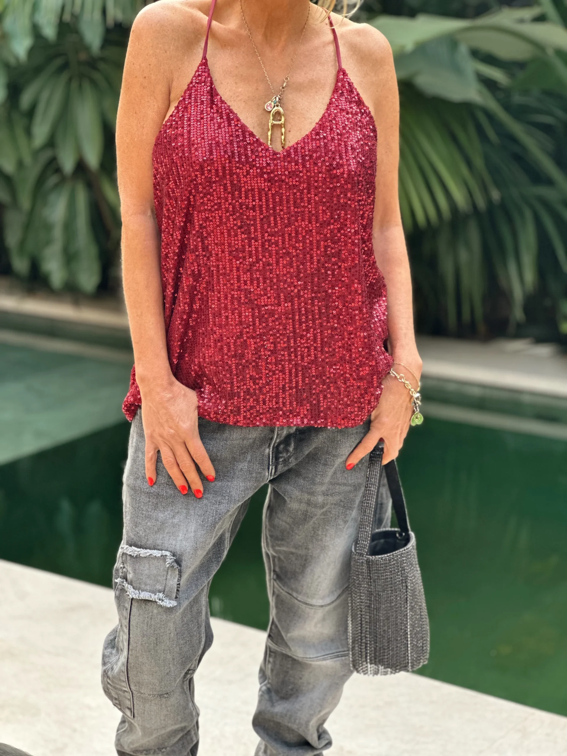 TOP LENTEJUELAS ASIMÉTRICA MARRÓN