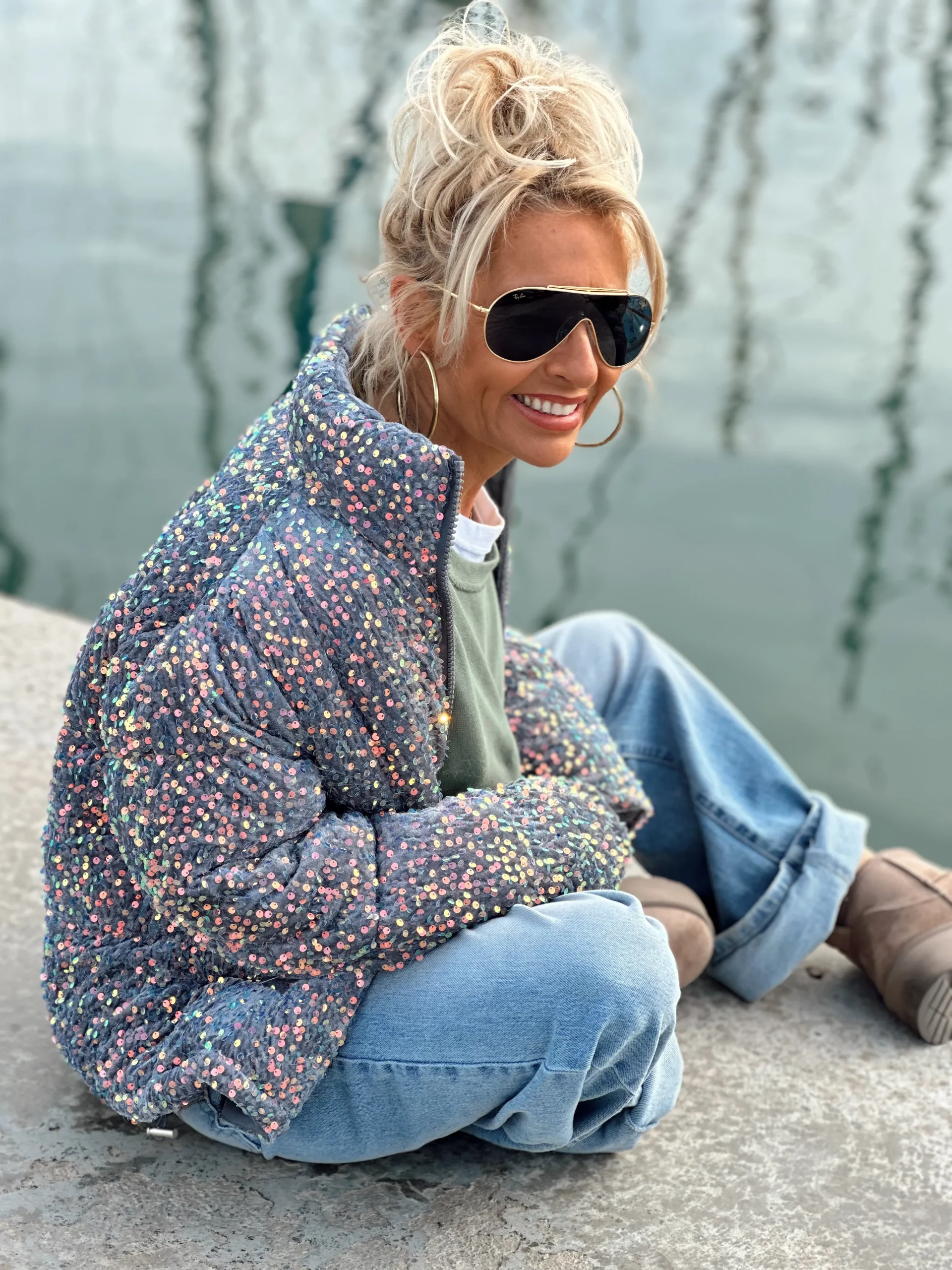 AMERICANA CON BOTONE TERCIOPELO GRIS