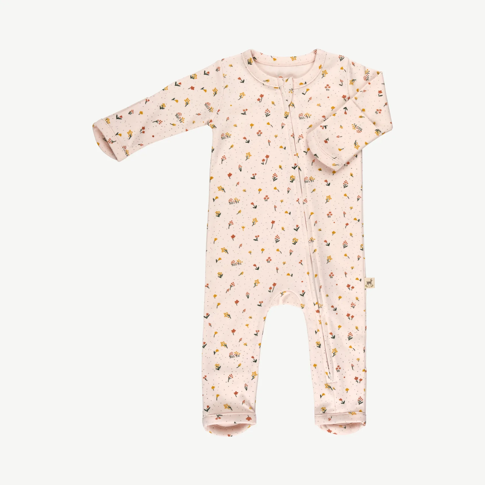 Pijama de una Pieza con Cierre de Bebé Rosa Pálido – Flores Silvestres