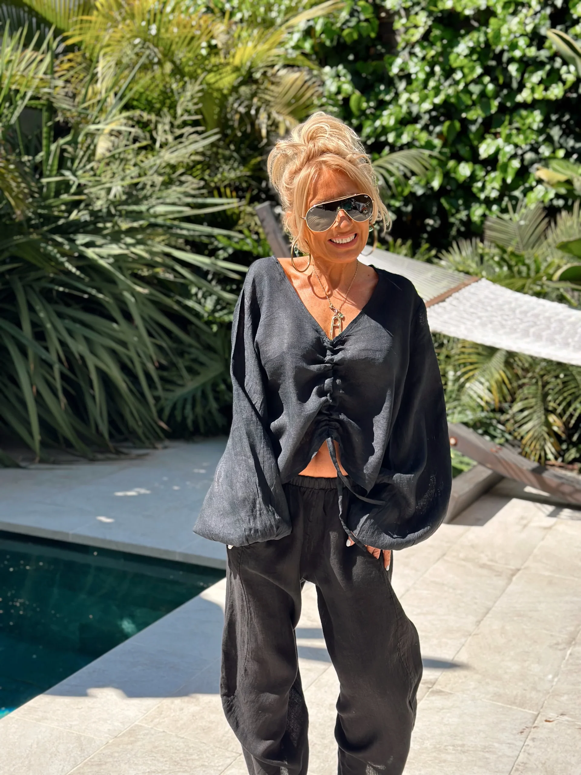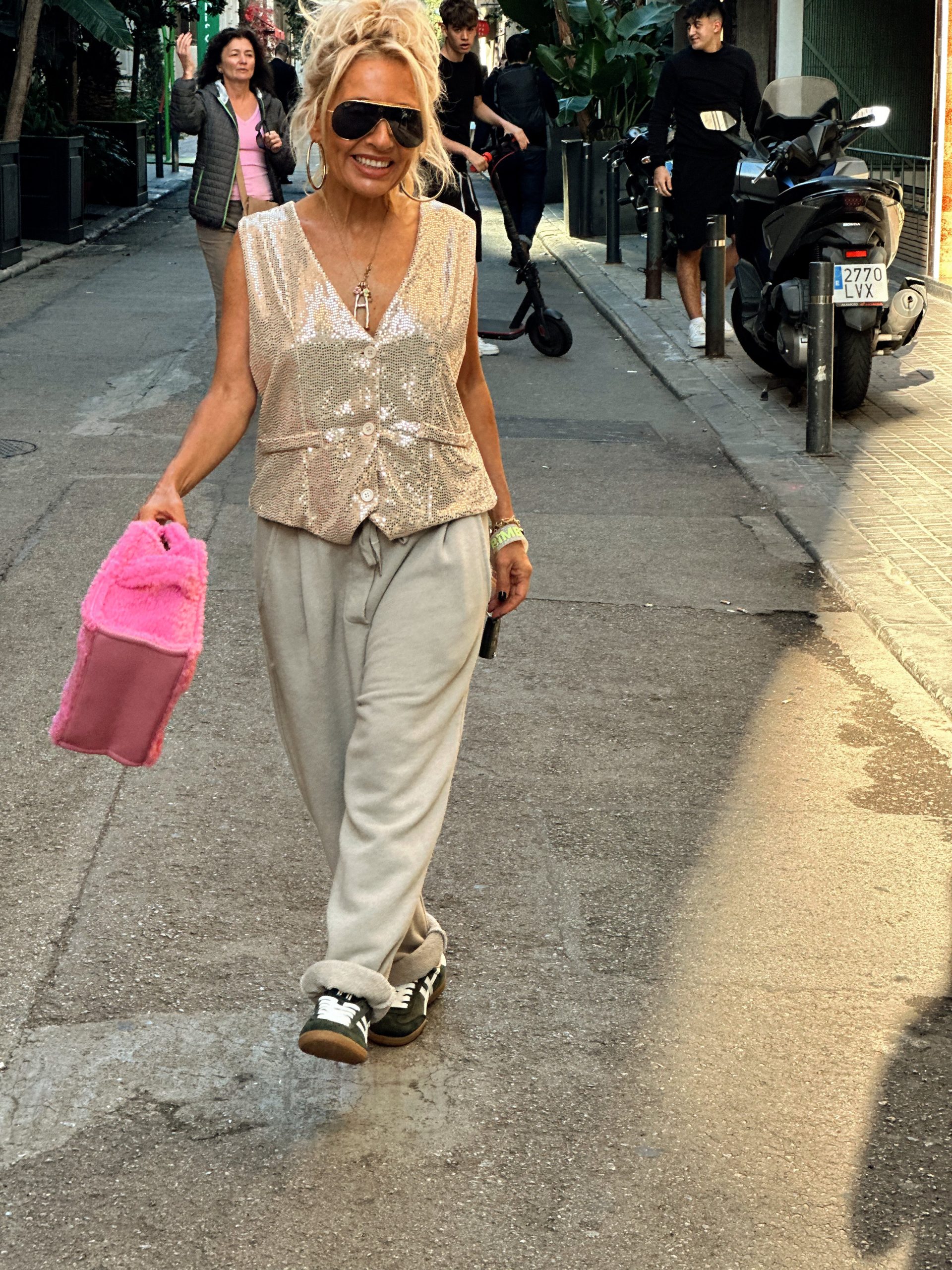 PANTALON OVERSIZE DE PANA CON BANDA BRILLANTE TEJA