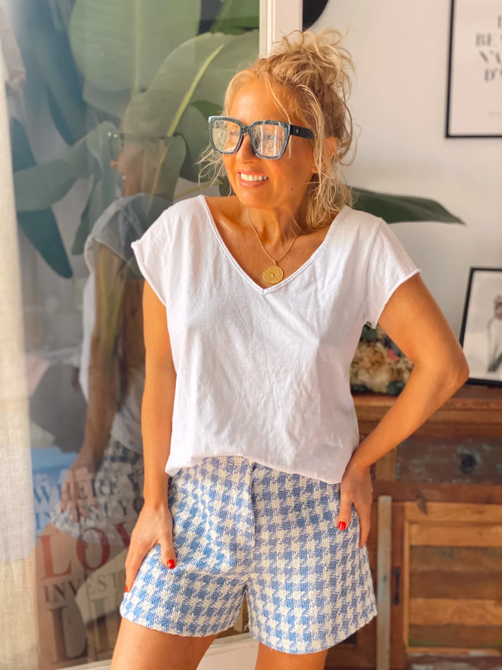 SHORT COCO CUADROS AZUL