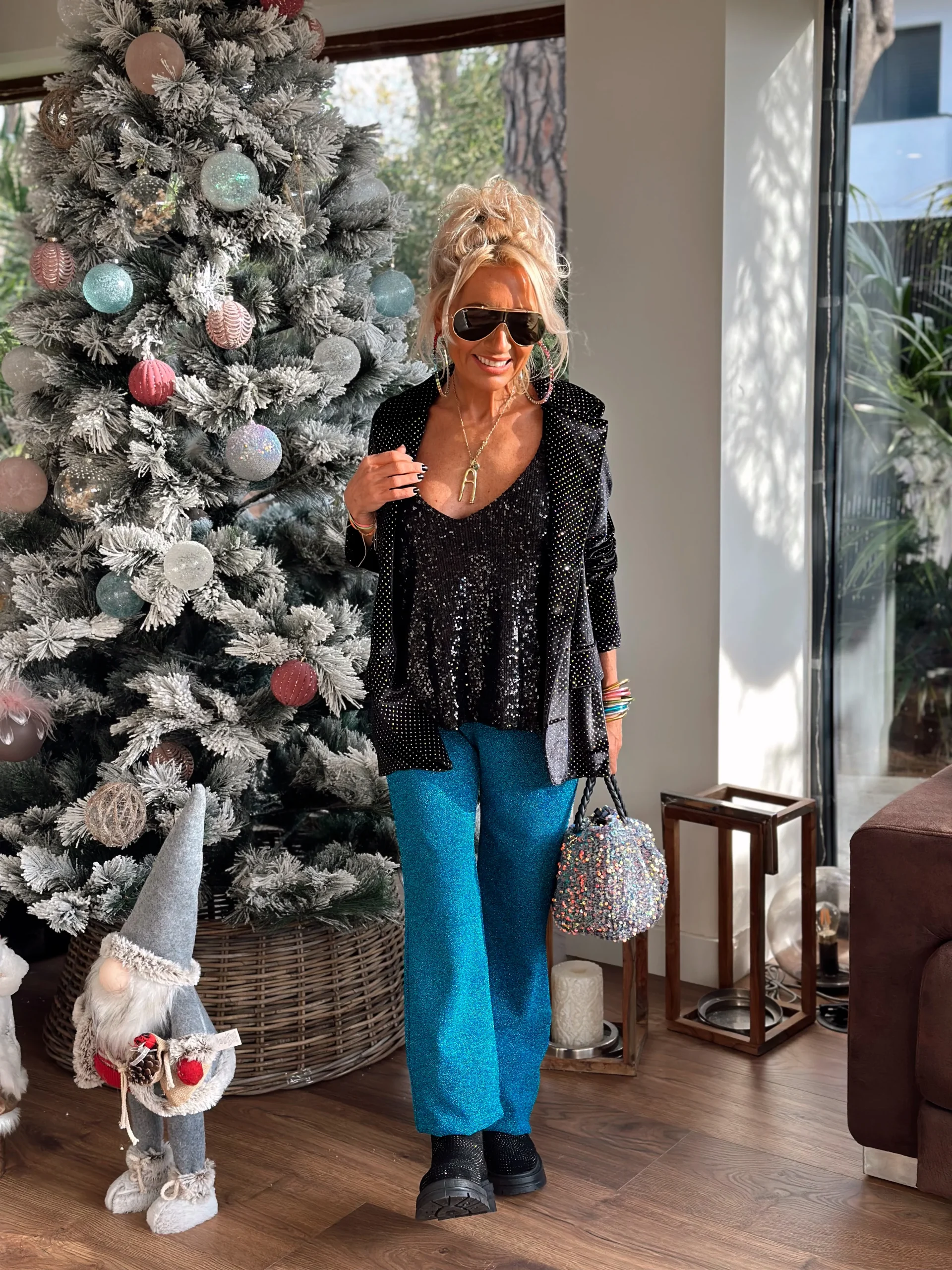 PANTALON BRILLANTE TURQUESA