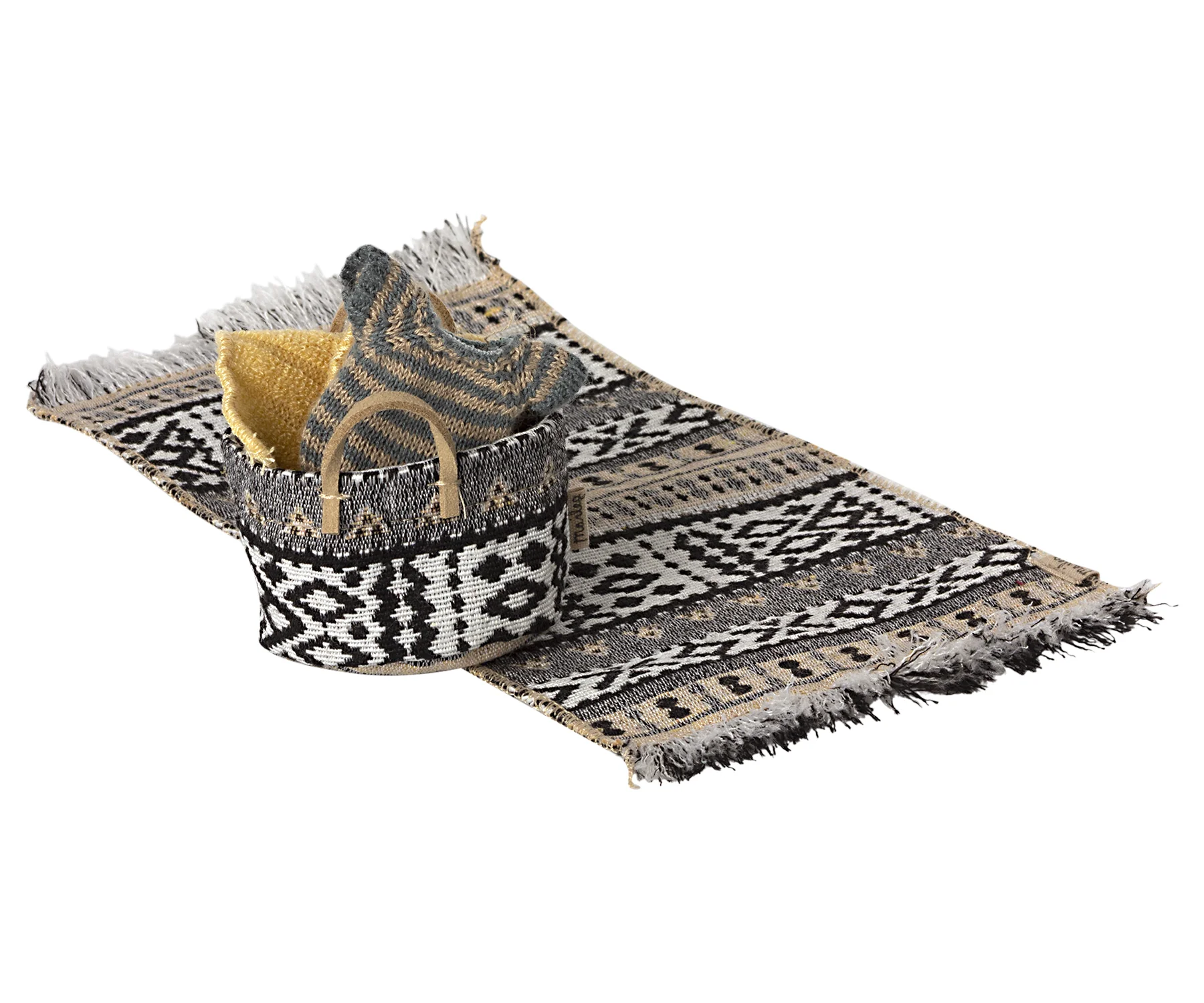 El diseño tan a la moda de esta alfombra de lana tejida para tu casa de muñecos Maileg dará un toque especial a cualquier rincón.