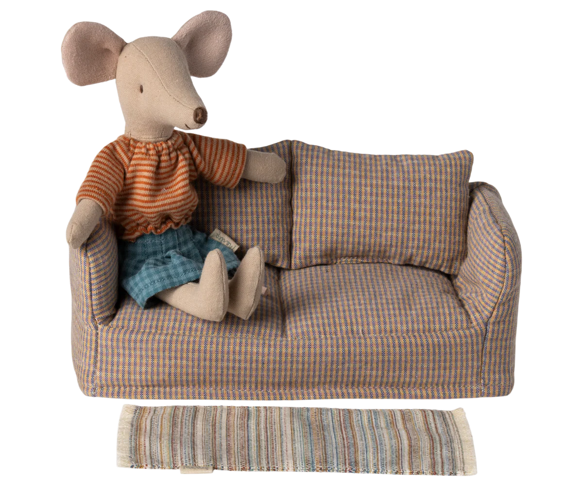El diseño tan a la moda de esta alfombra de lana tejida para tu casa de muñecos Maileg dará un toque especial a cualquier rincón.