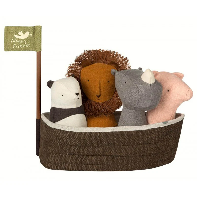 Arca de Noé con cuatro animalitos que, a su vez, son sonajeros.