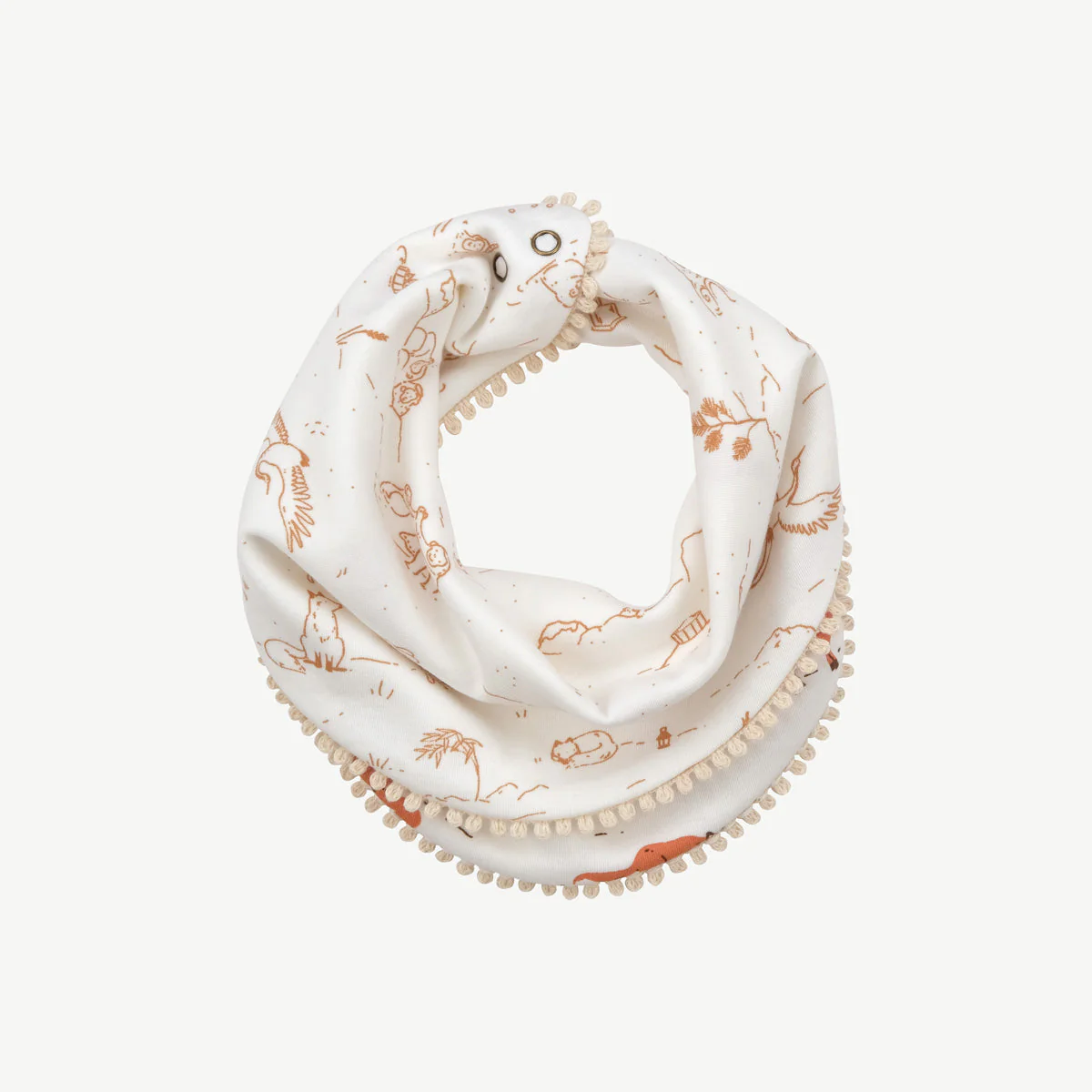 Esta bandana de doble cara, hecha completamente de algodón, combina perfectamente con nuestras mantas, enterizos, bodies, polos (T-shirts) y pantalones. Cuenta con dos broches en la parte trasera para ajustar al cuello de tu pequeño.