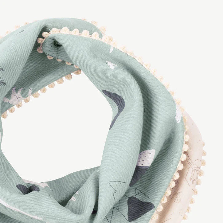 Este babero reversible completamente de algodón combina perfectamente con nuestras mantas, monos, mamelucos, camisetas y pantalones. Tiene broches en la parte de atrás para que este se ajuste al cuello de tu pequeño.
