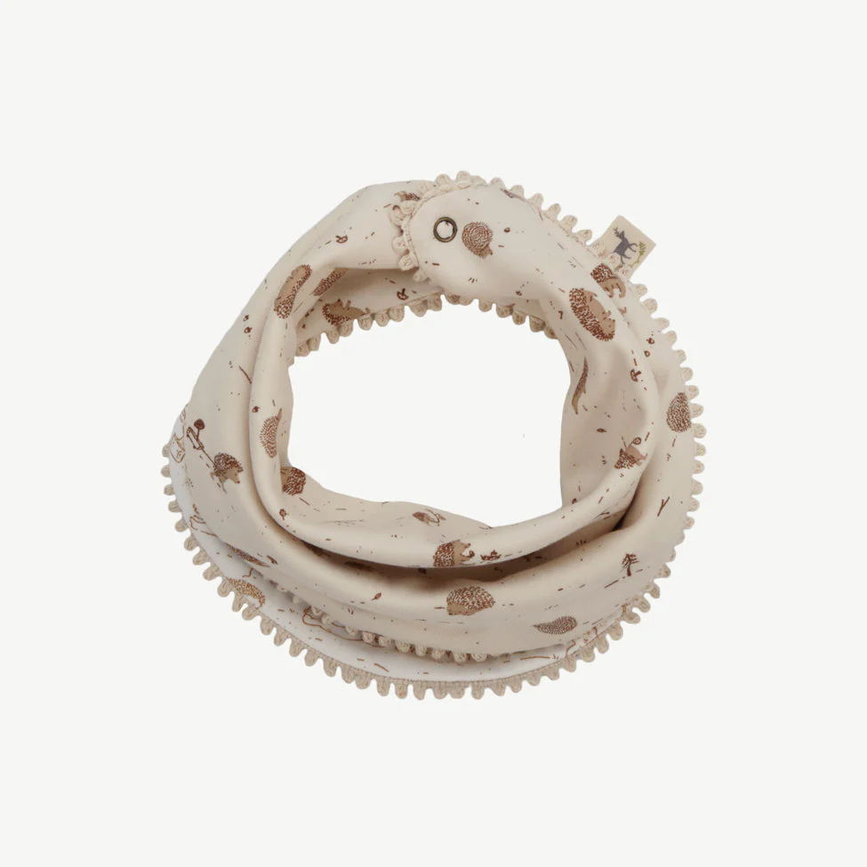 Este babero reversible completamente de algodón combina perfectamente con nuestras mantas, monos, mamelucos, camisetas y pantalones. Tiene broches en la parte de atrás para que este se ajuste al cuello de tu pequeño.