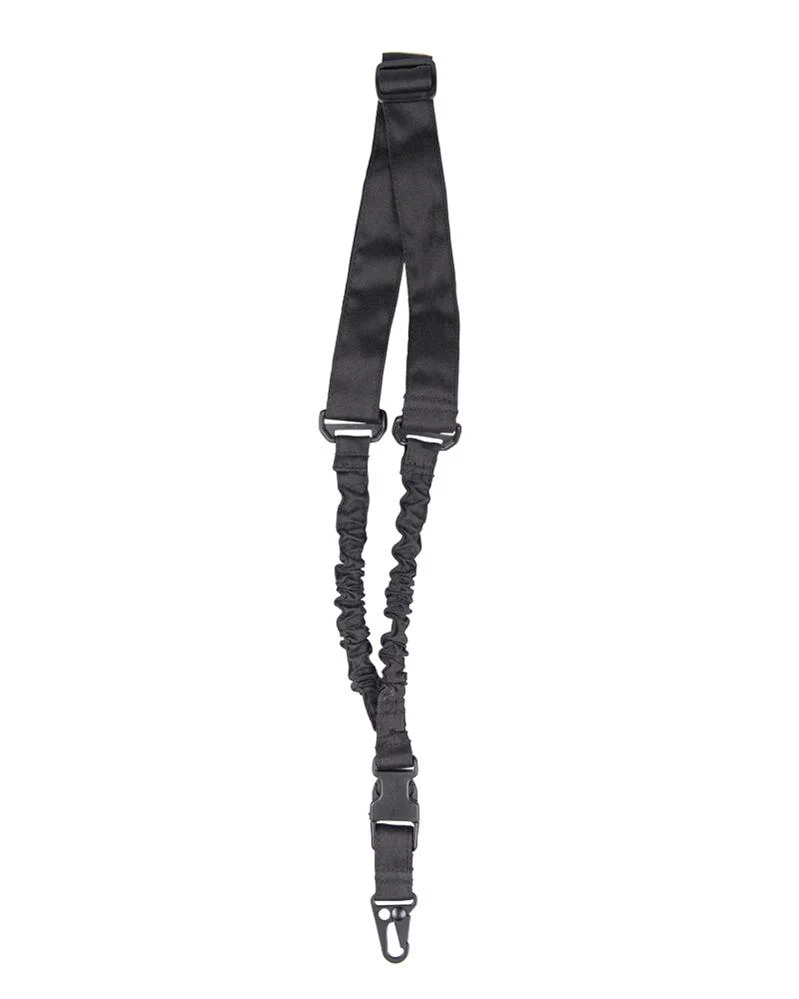 Correa táctica de un solo punto con sistema elástico bungee, diseñada para transportar equipo de forma eficiente y cómoda. Gracias a su diseño simple y su ajuste rápido, es ideal para actividades outdoor, airsoft, fotografía de aventura o uso profesional. Fabricada en material textil resistente, con clip de liberación rápida. Color negro.