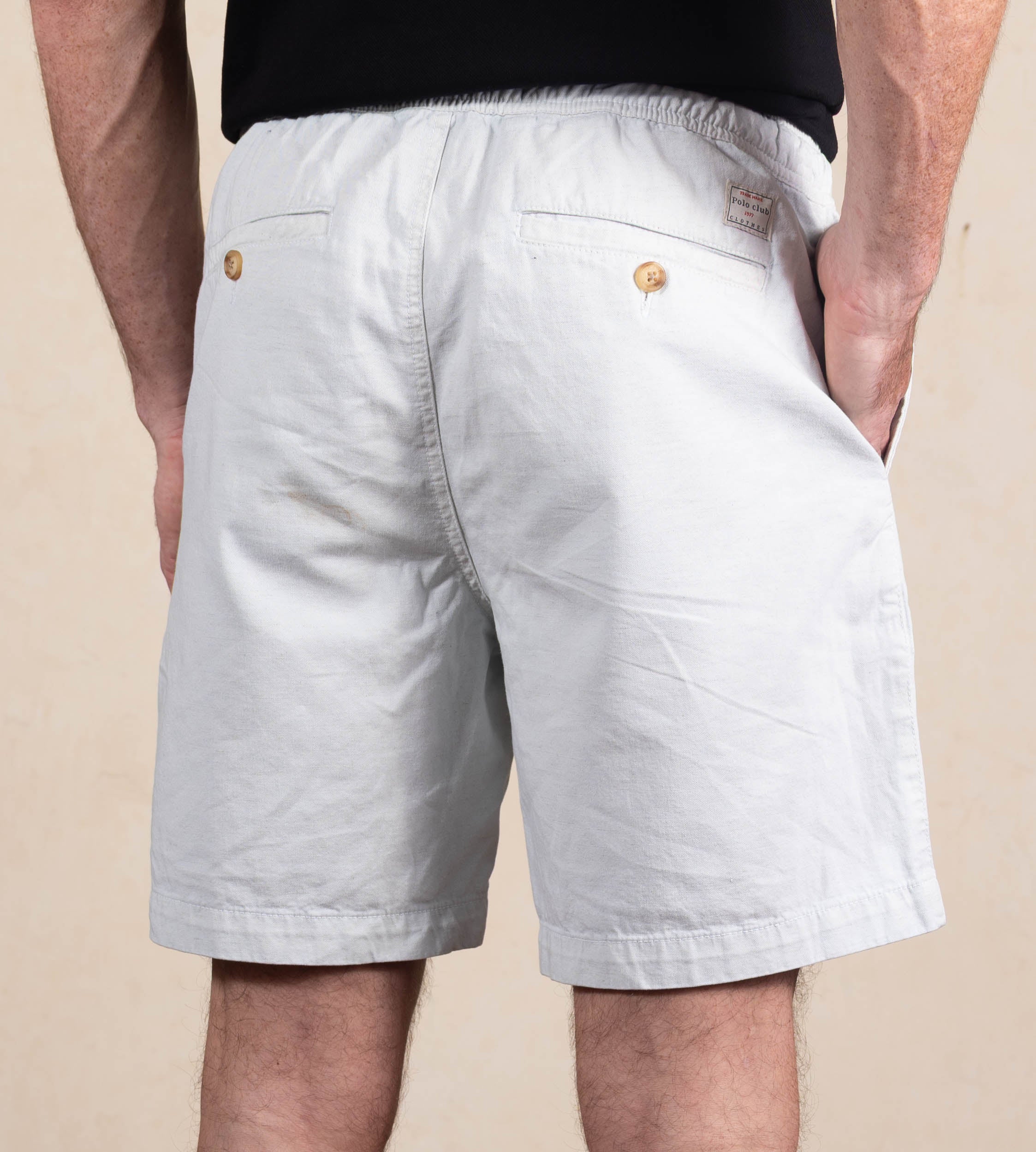 Bolsillo trasero en ribete.