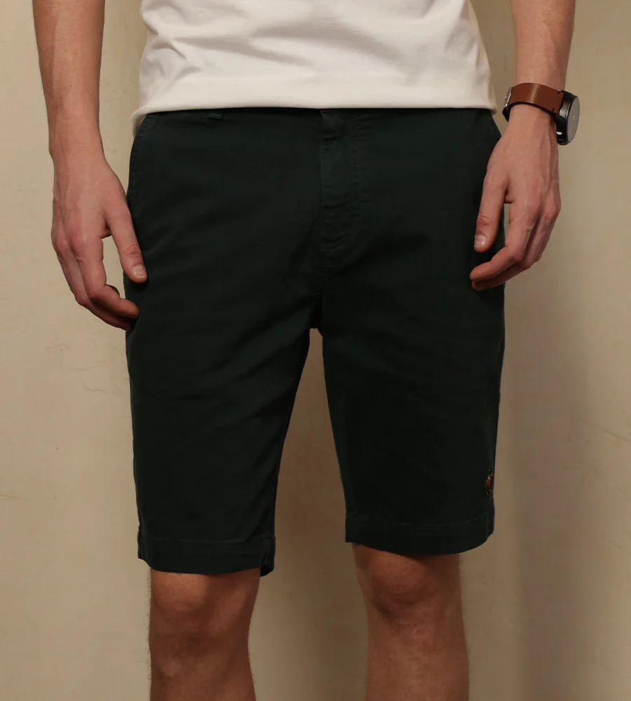 Bermuda cl谩sica color verde petr贸leo para hombre.
