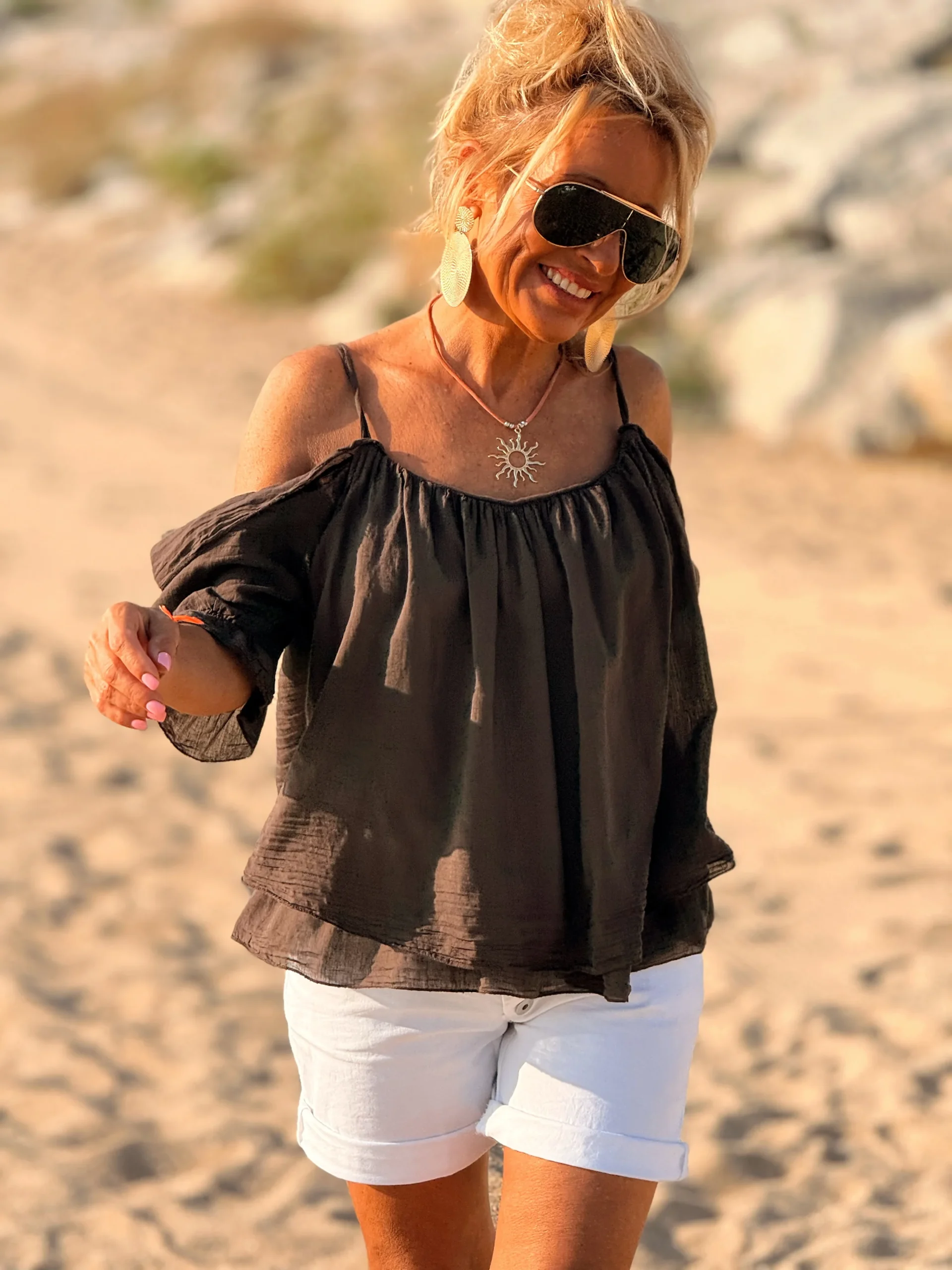 💫 Llévala con jeans, falda o short… siempre queda bien.