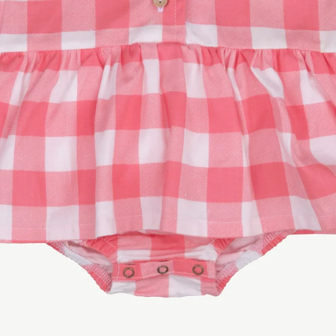 Viste a tu bebé con encanto tropical con nuestro Body Vestido Camisero para bebé. Este vestido presenta un cuello estilo hawaiano y una pechera con encantadores botones de madera. Tiene mangas cortas y una bombacha incorporada que se abre con broches para cambiar fácilmente. Hecho de suave tela de algodón Pima, asegura que tu pequeño/a se mantenga cómodo/a y con estilo durante todo el dÃa.