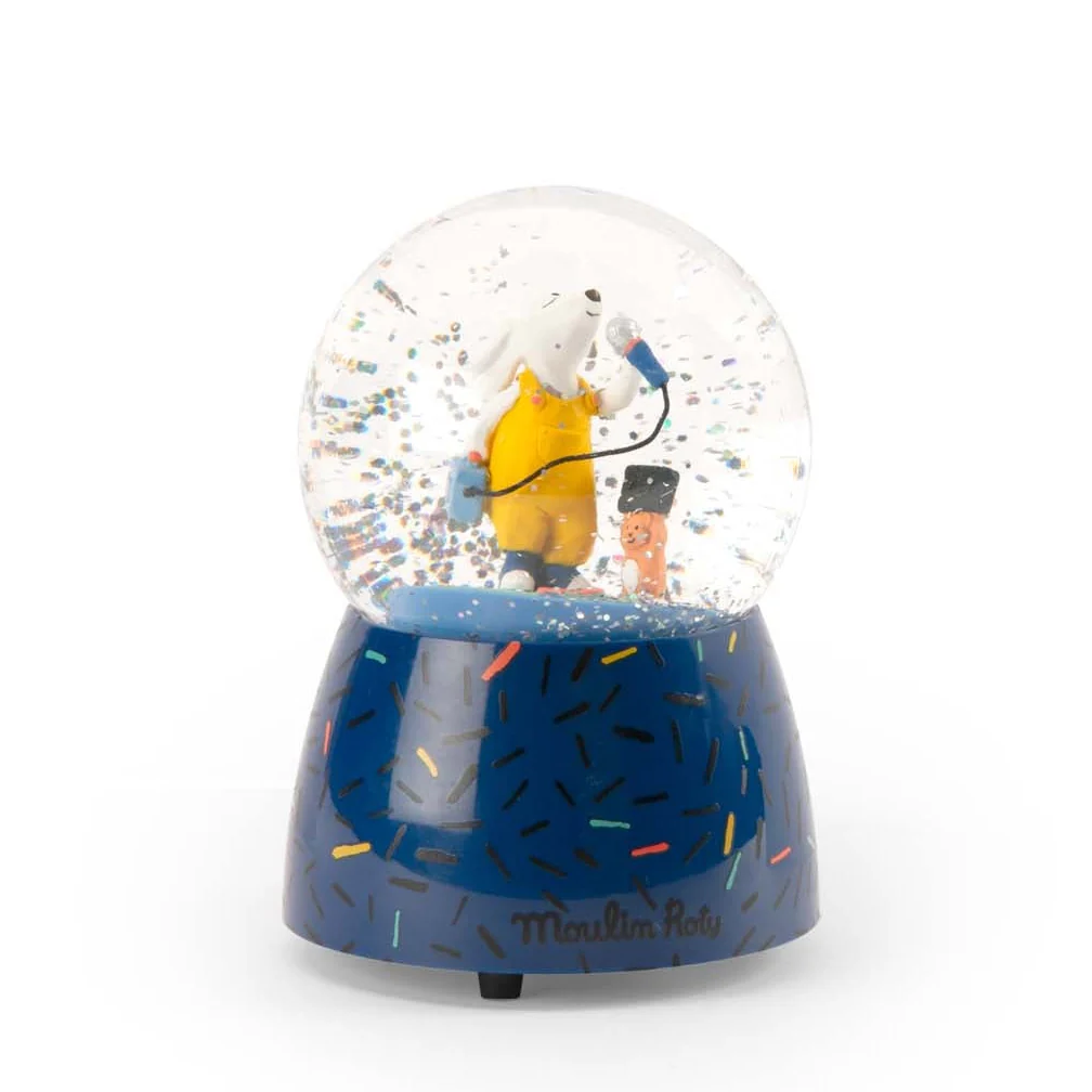 Bola de nieve musical representando a Pilou en plena karaoke para divertir a su público. Además de decorar su habitación, una alegre melodía acunará a los más pequeños en el momento de acostarse.