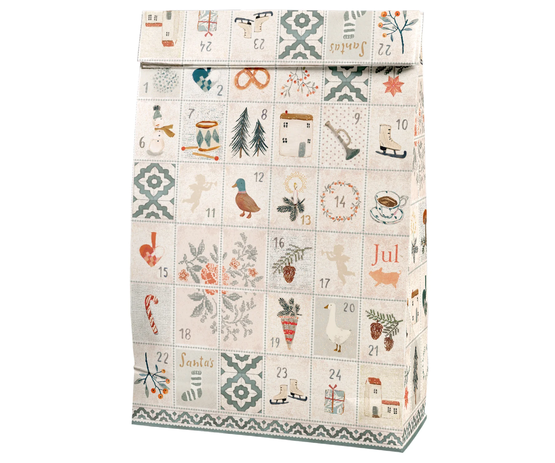 Estas bolsas de regalo de regalo son pura dulzura, sus motivos navideños a modo de calendario de Adviento, tienen el inconfundible diseño de Maileg.
