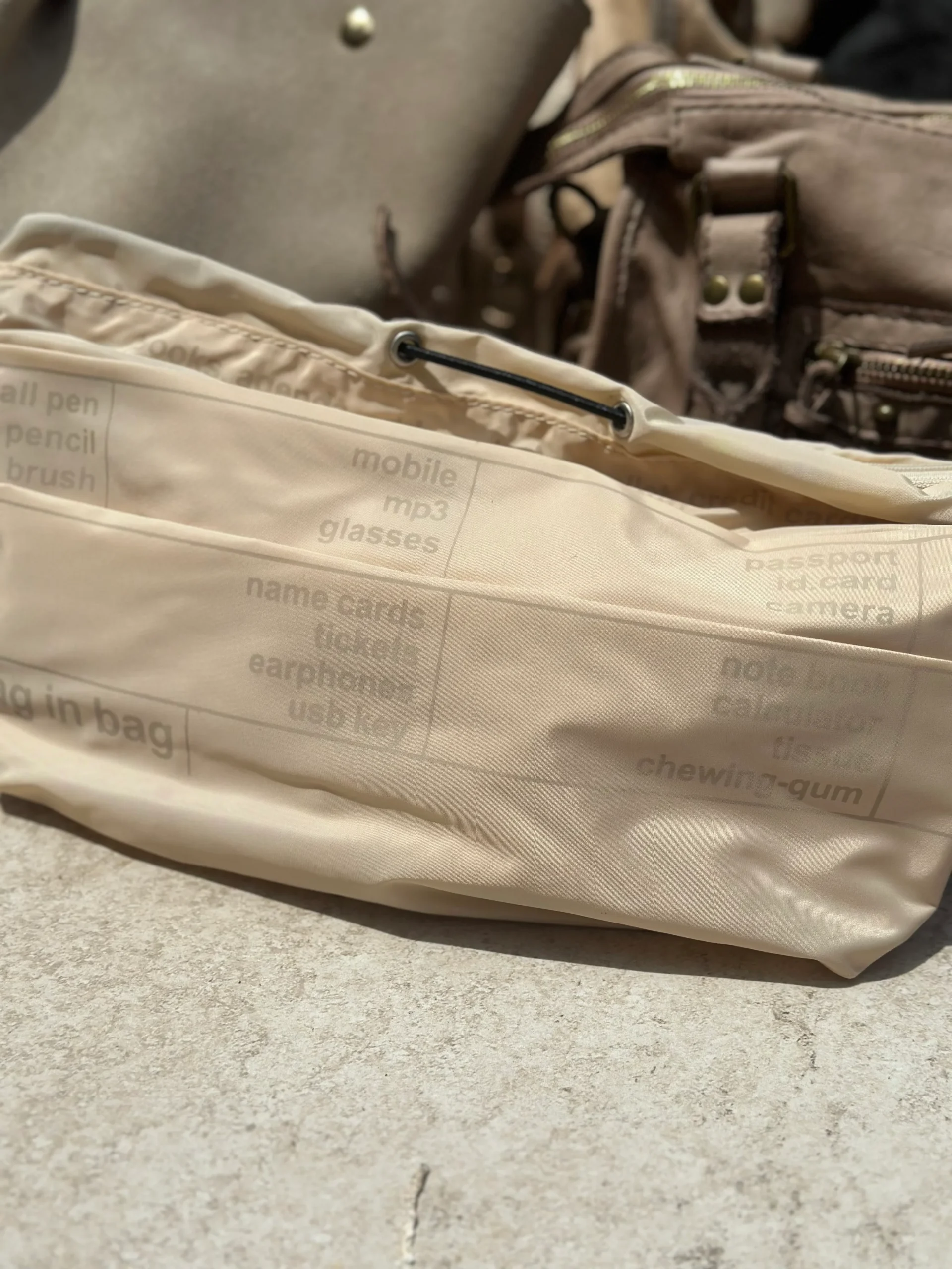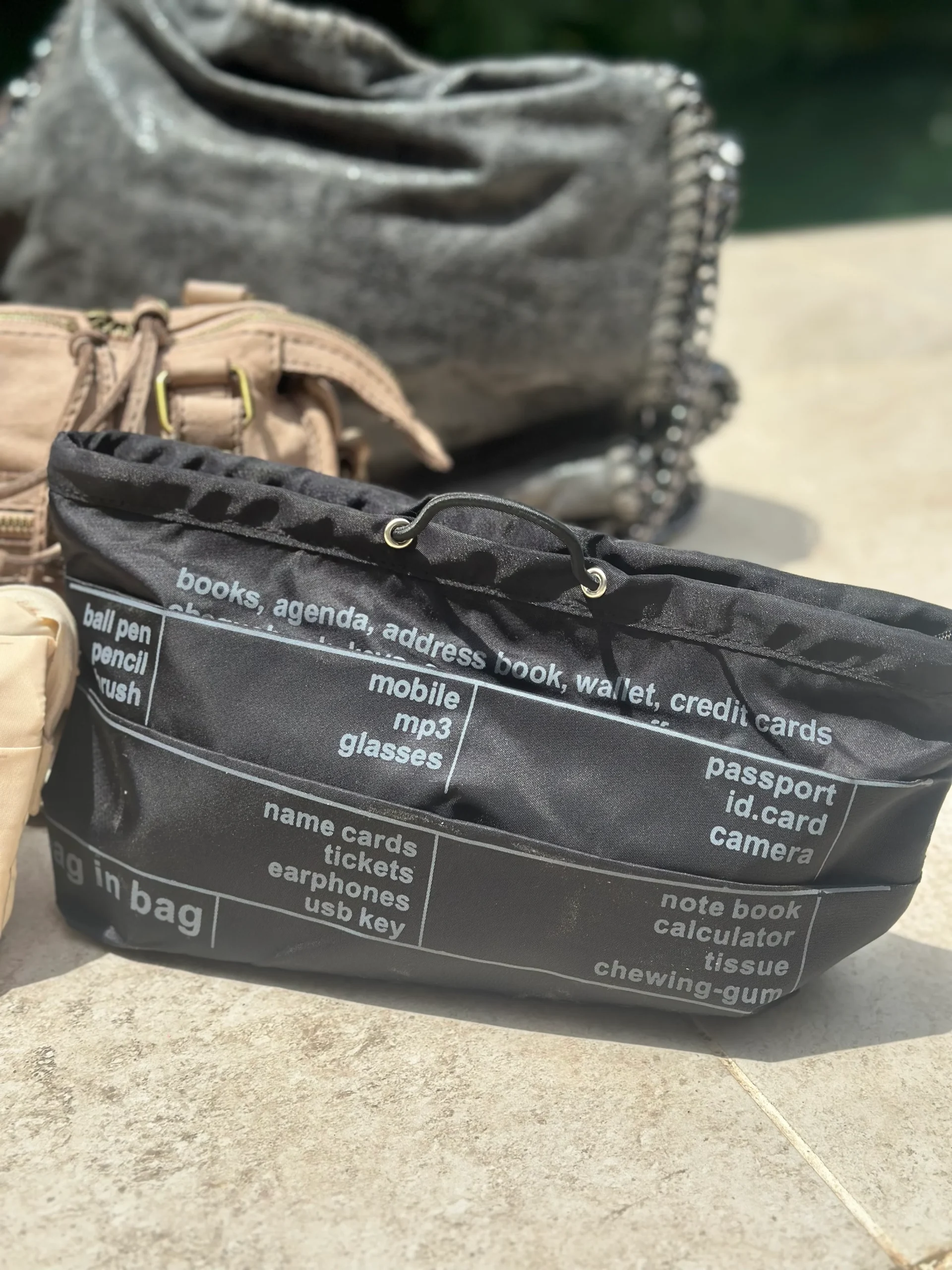 Pequeño bolso organizador ideal para guardar tus objetos esenciales como el monedero, el móvil, las llaves y otros pequeños artículos. Perfecto para llevar dentro de tu bolso principal, te permite cambiar de bolso cada día sin preocuparte por olvidar nada importante. Este práctico accesorio te ahorra tiempo y te ofrece comodidad, manteniendo todo lo necesario al alcance de la mano. ¡Un imprescindible para quienes aman el orden y la practicidad en su día a día!✨