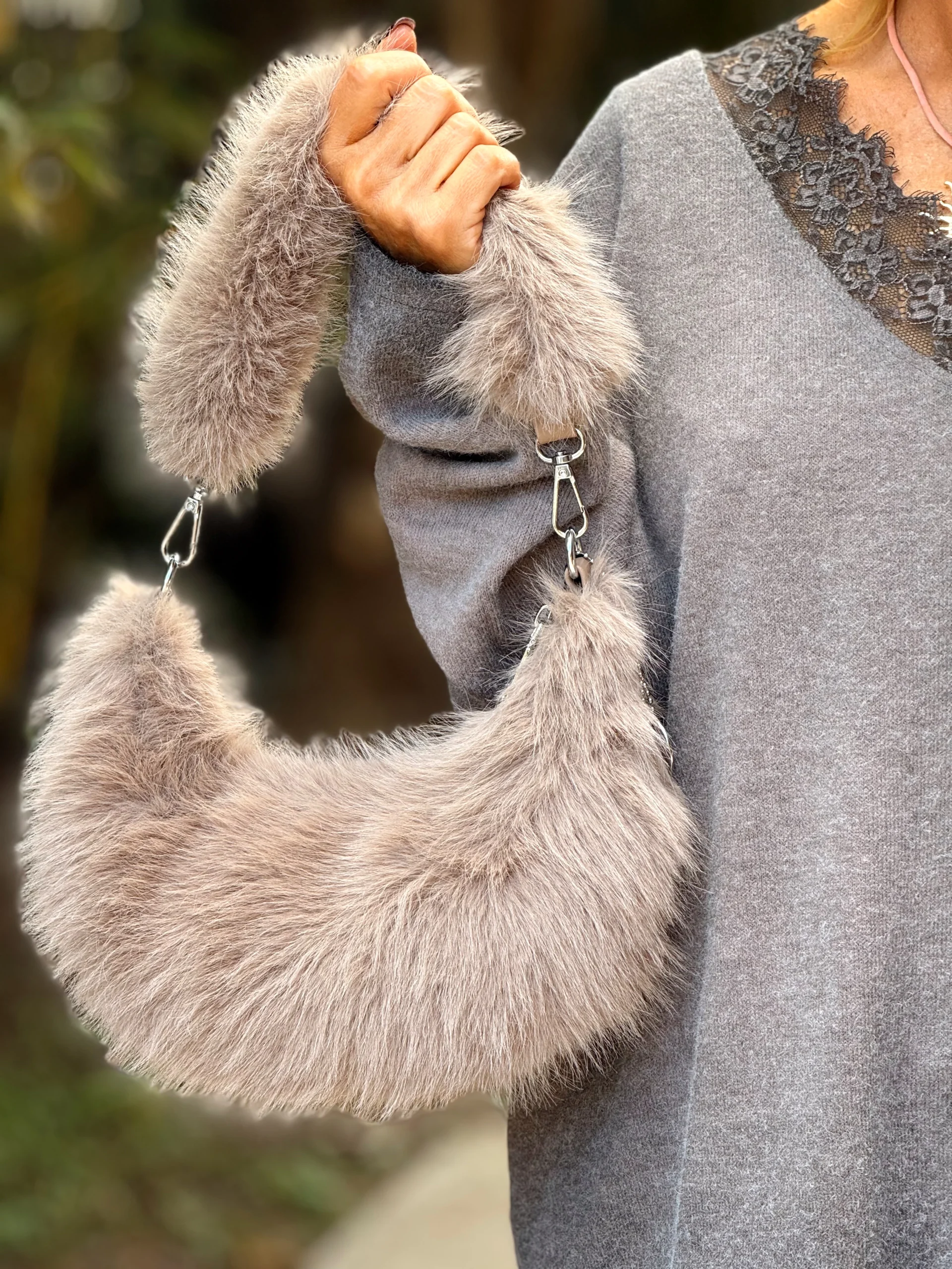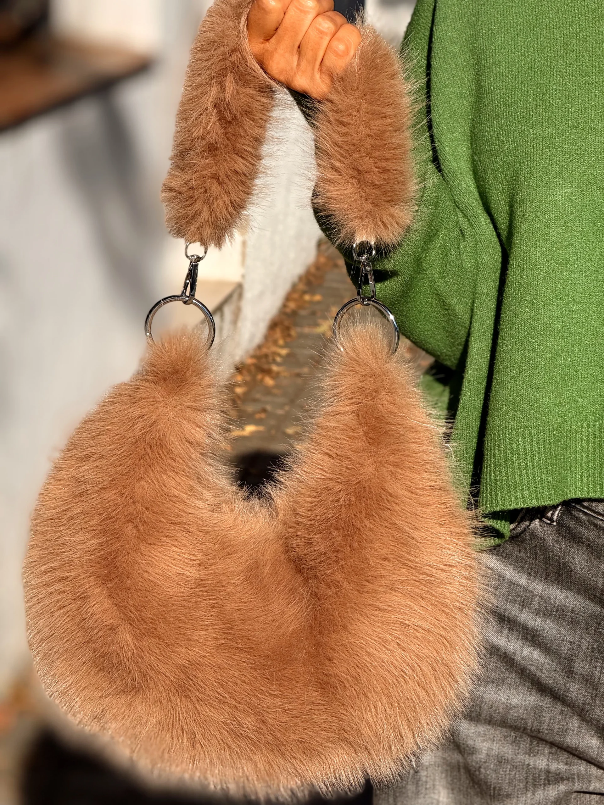 Bolso con forma de luna, confeccionado en piel sintética suave — simplemente espectacular. ✨
