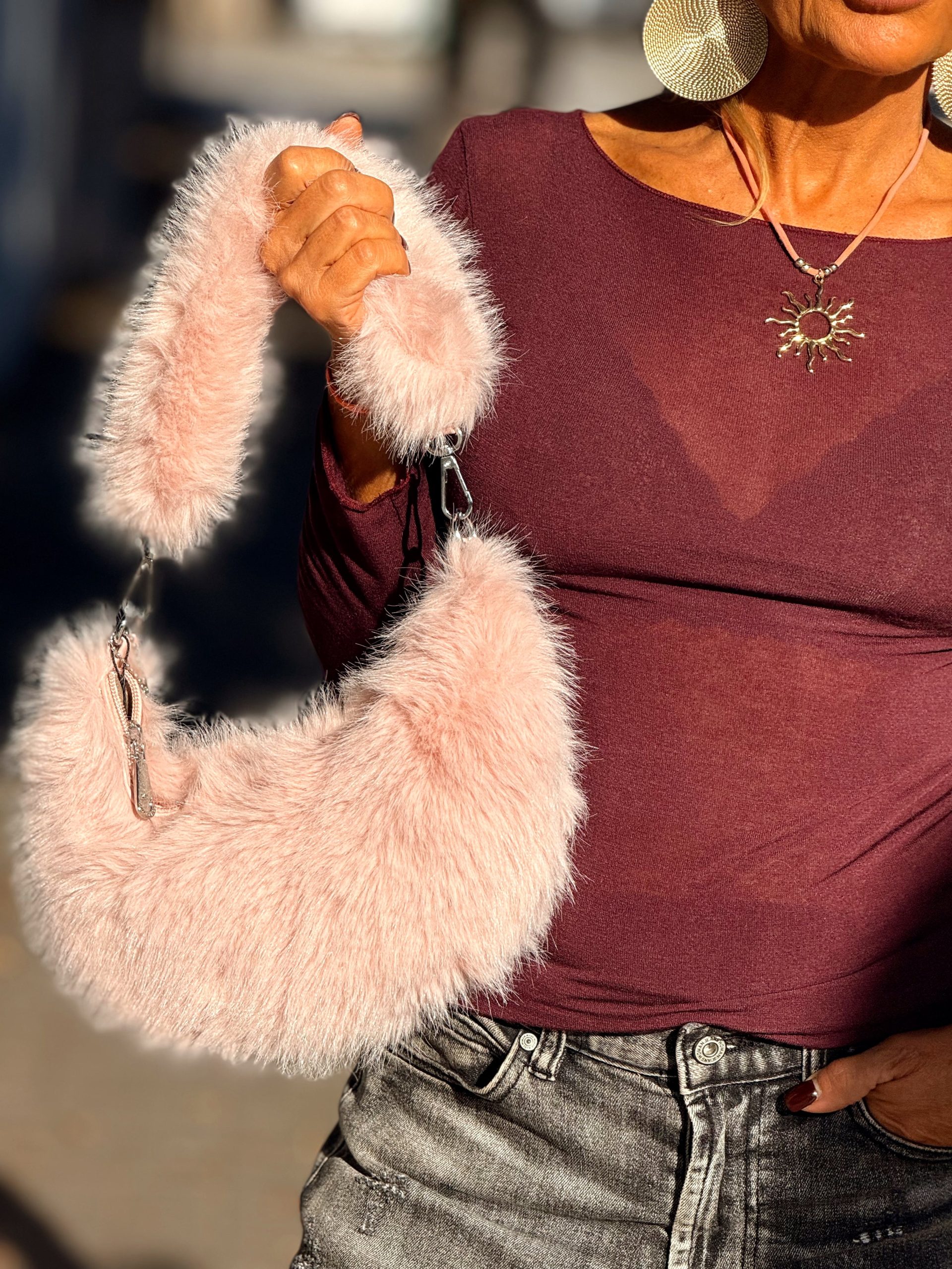 Bolso con forma de luna, confeccionado en piel sintética suave — simplemente espectacular. 👜✨