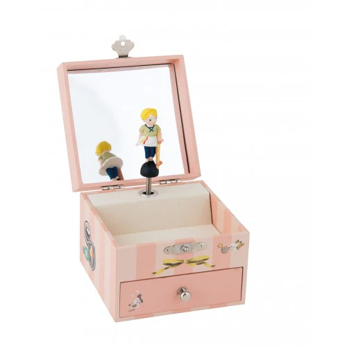 Esta bonita caja con su interior de fieltro también podrá servir de joyero o para guardar muchos tesoros. Atemporal, la caja de música es también cajita de tesoros, un bonito recuerdo que conservará de su infancia.