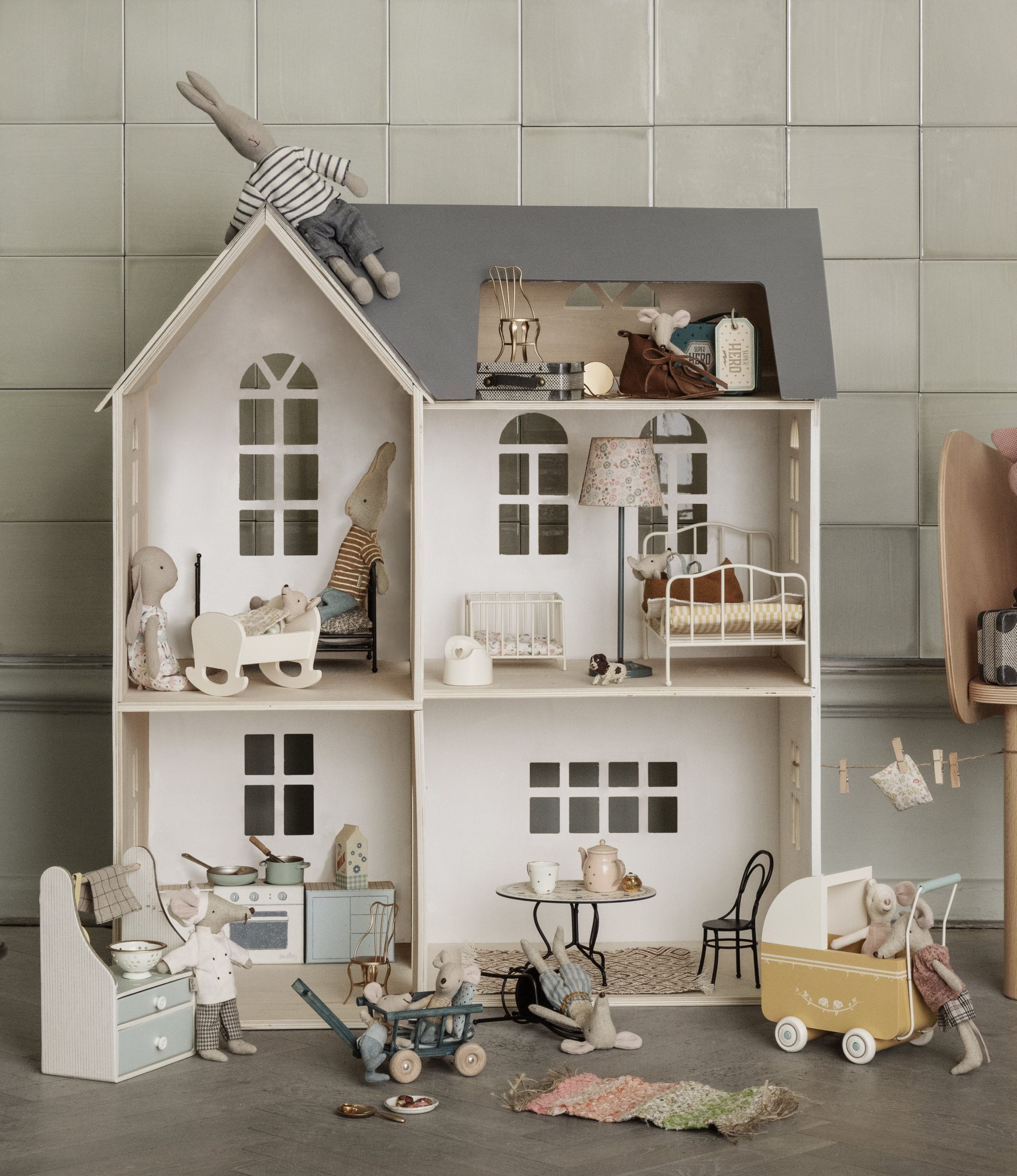 ¡Organiza con tus muñecos Maileg una fiesta de pijamas! Esta bonita cama de metal viene con una manta, colchón y almohada.