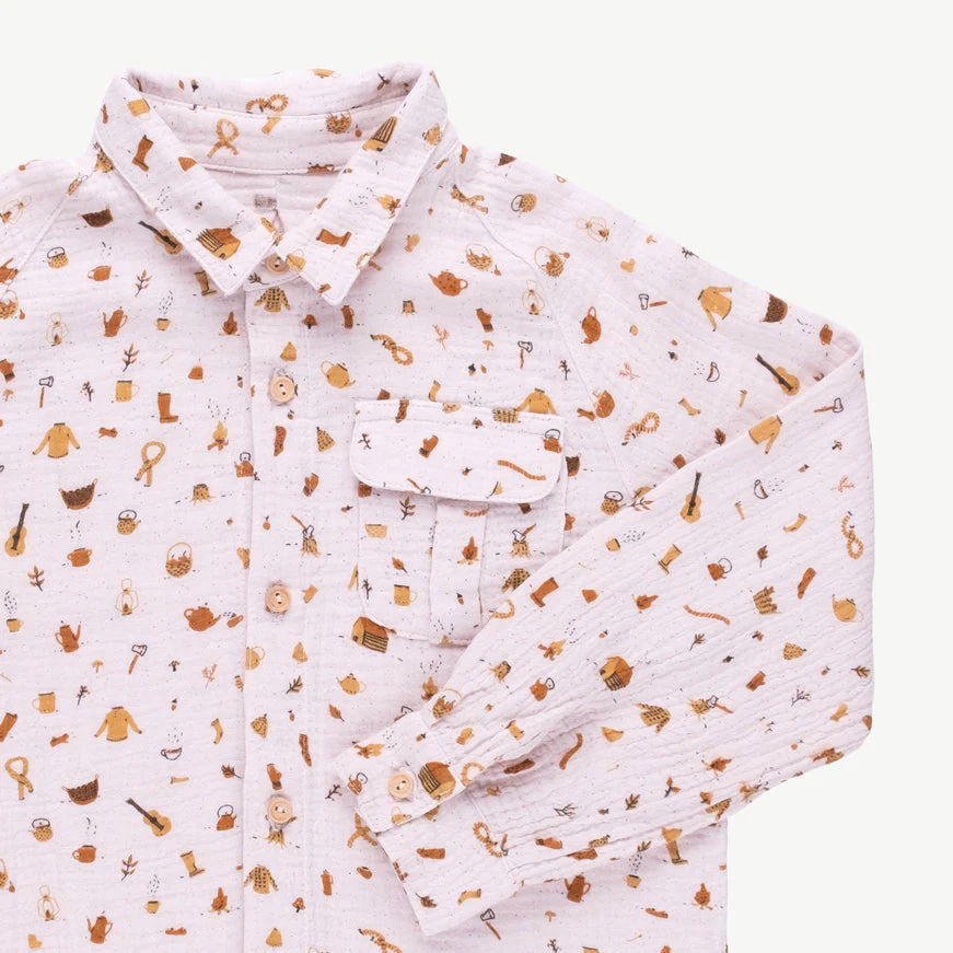 Camisa oversized de tejido muselina con botones de madera. ¡Teñido en prenda para un look desgastado!