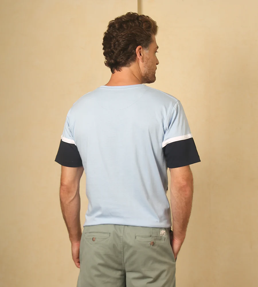 Lleva en tus looks de fin de semana una t-shirt en bloques cómoda y fresca.