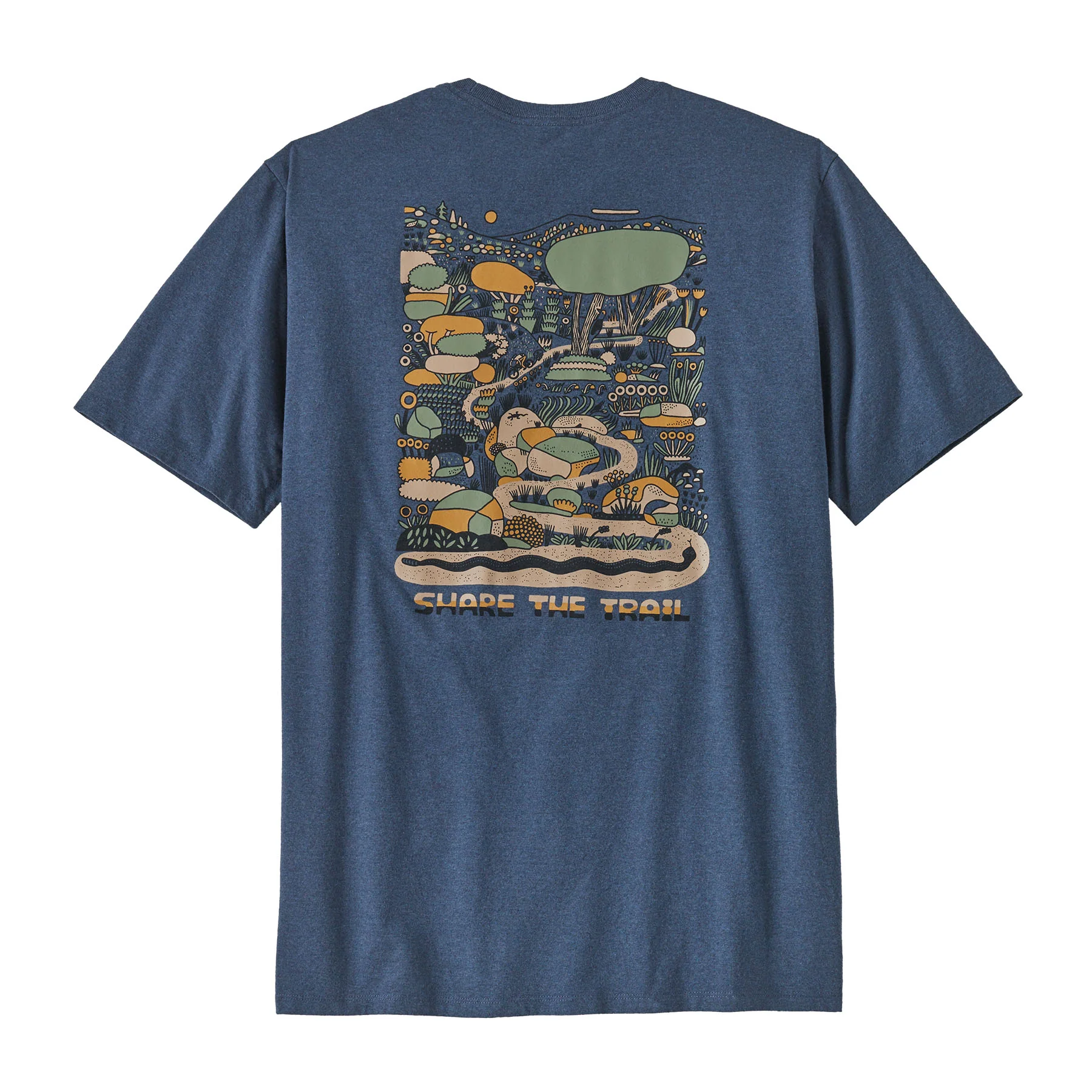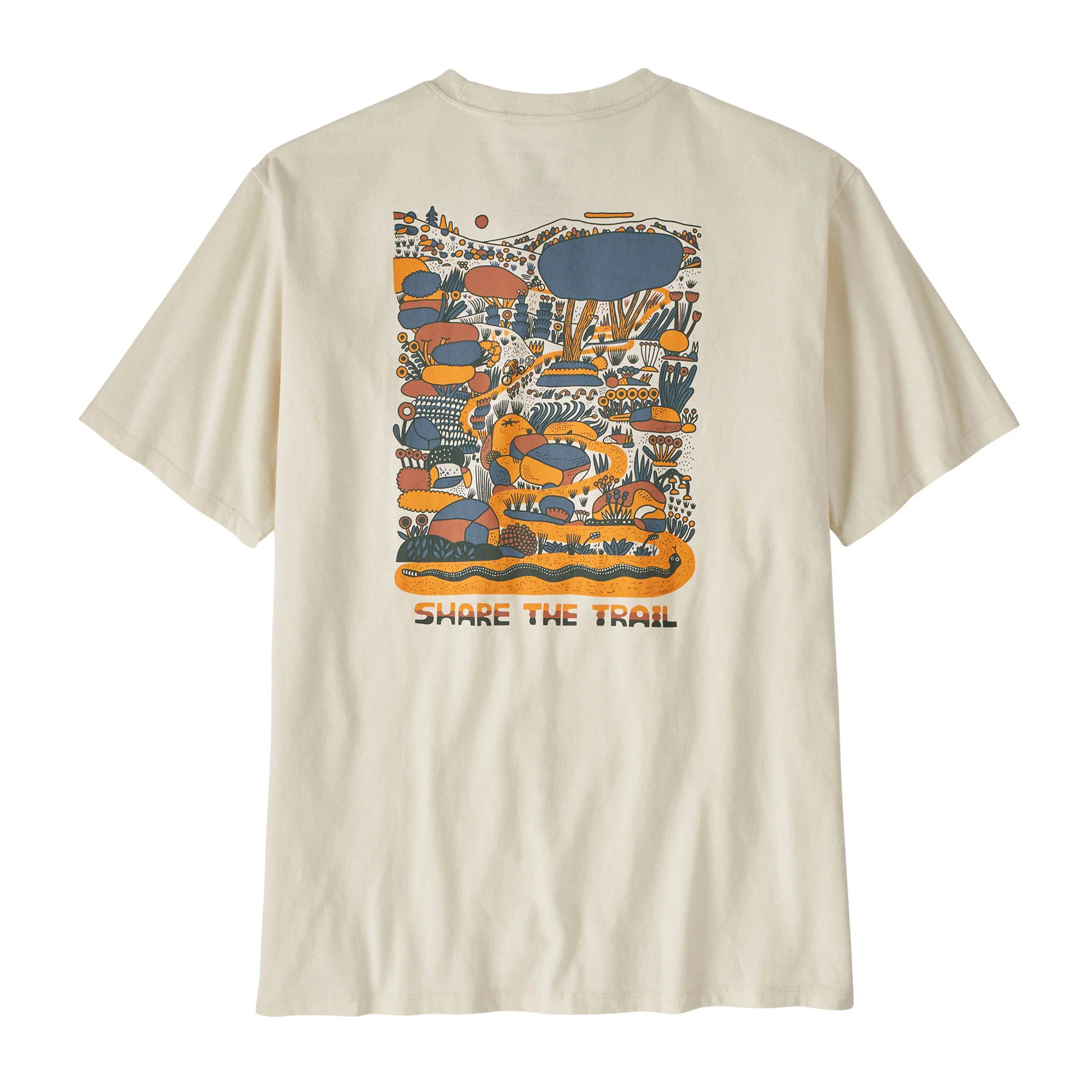 La ilustración de Wyatt Hersey nos recuerda que debemos ser respetuosos con quienes recorren el sendero, pero también con la flora y la fauna a lo largo del camino. Nuestra Commontrail Pocket Responsibili-Tee® está hecha con materiales reciclados. Podemos reducir el uso de materias primas vírgenes al emplear retazos de tela y botellas recicladas. Hecha en una fábrica que cuenta con Certificación Fair Trade™.