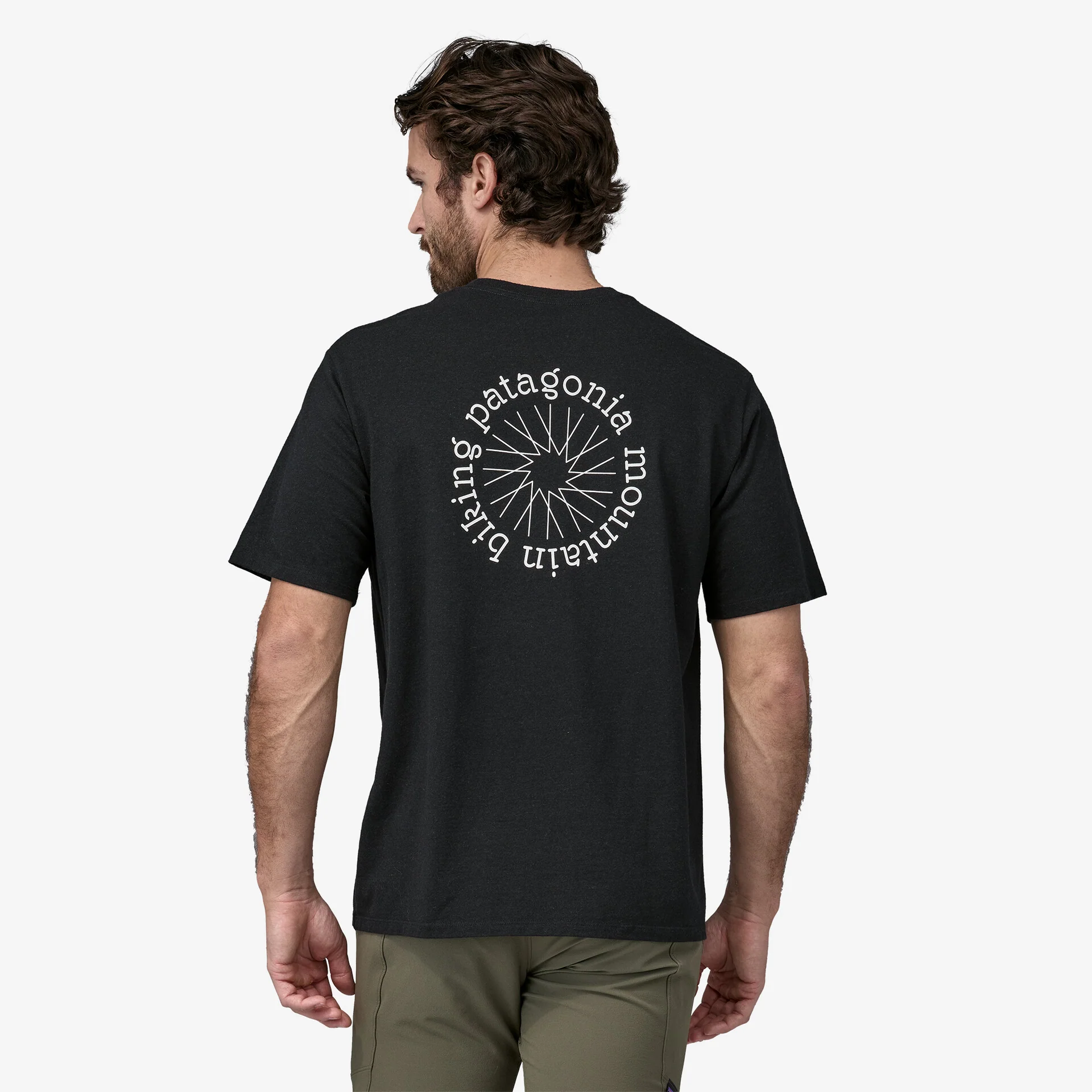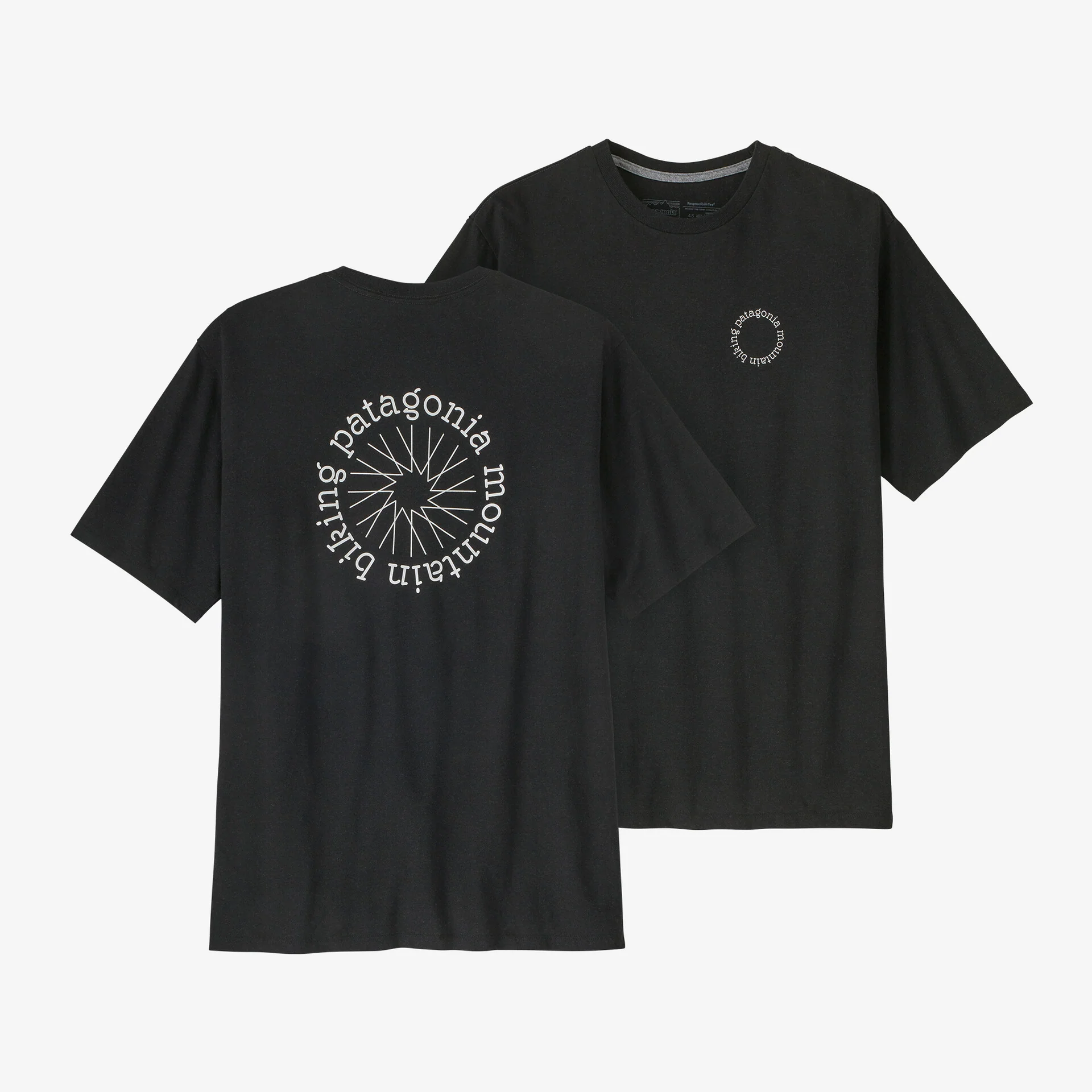 El sol y una rueda de bicicleta se encuentran en el diseño de la Spoke Stencil Responsibili-Tee® para celebrar a Patagonia MTB: una comunidad de ciclistas de montaña que va más lejos y más profundo, siempre protegiendo los lugares donde amamos pedalear. Con ese fin y para ayudar a cuidar los recursos, esta camiseta está hecha de telas 100% recicladas, es la camiseta de Patagonia con la huella de carbono más baja y cuenta con Certificación Fair Trade™.