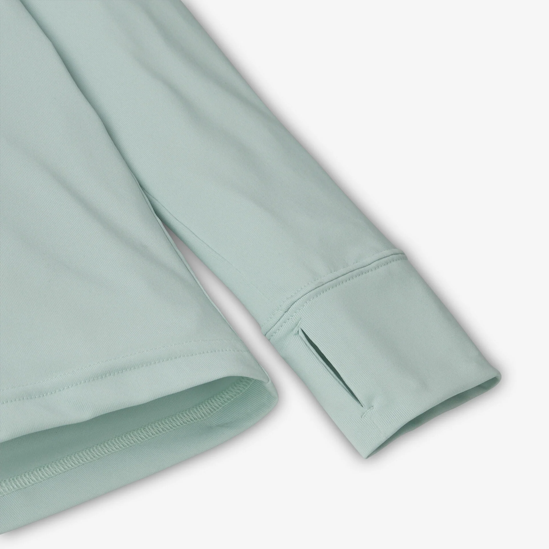 • Ojales de pulgar en los puños evitan que las mangas se suban al jugar o ponerse una chompa. Dobladillo levemente más largo en la parte posterior para mayor cobertura; bucle para colgar en la parte interior trasera del cuello.