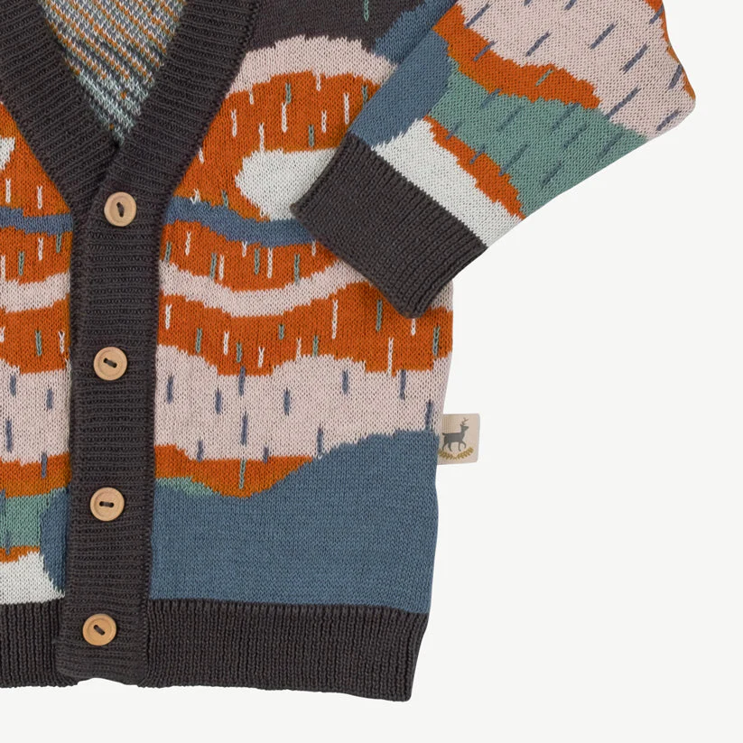 Los cardigans de punto con botones de madera están tejidos con un diseñode colores que nos recuerda a los bosques otoñales. El Tejido jacquard confeccionado con el más suave algodón pima peruano.