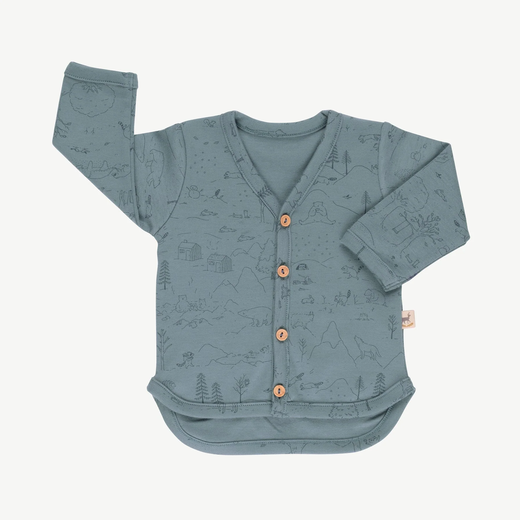 Cardigan con botones de madera confeccionado con el más suave tejido de punto Interlock. Segunda gran capa. CombÃnalos con nuestras camisetas, monos y pantalones.