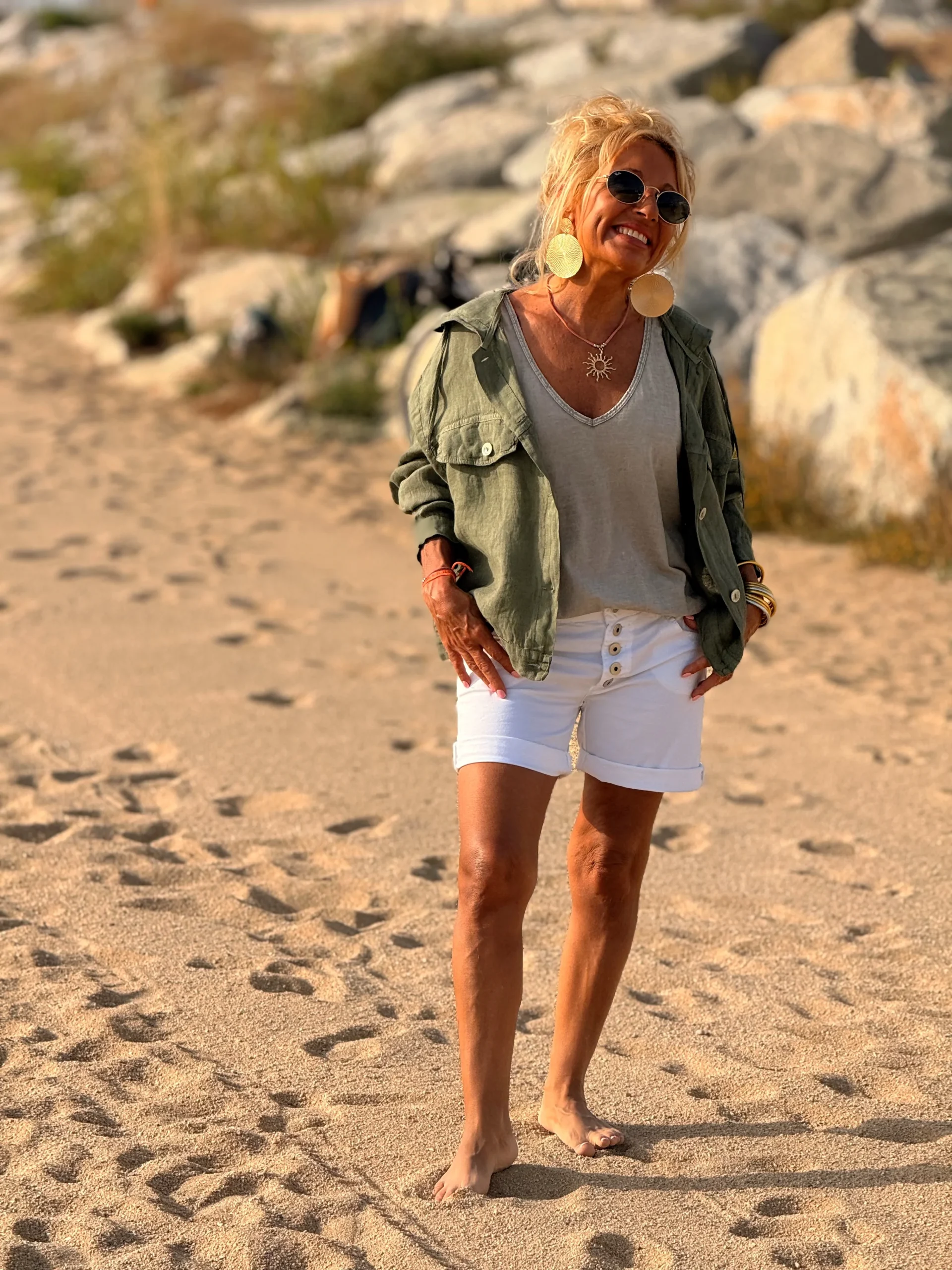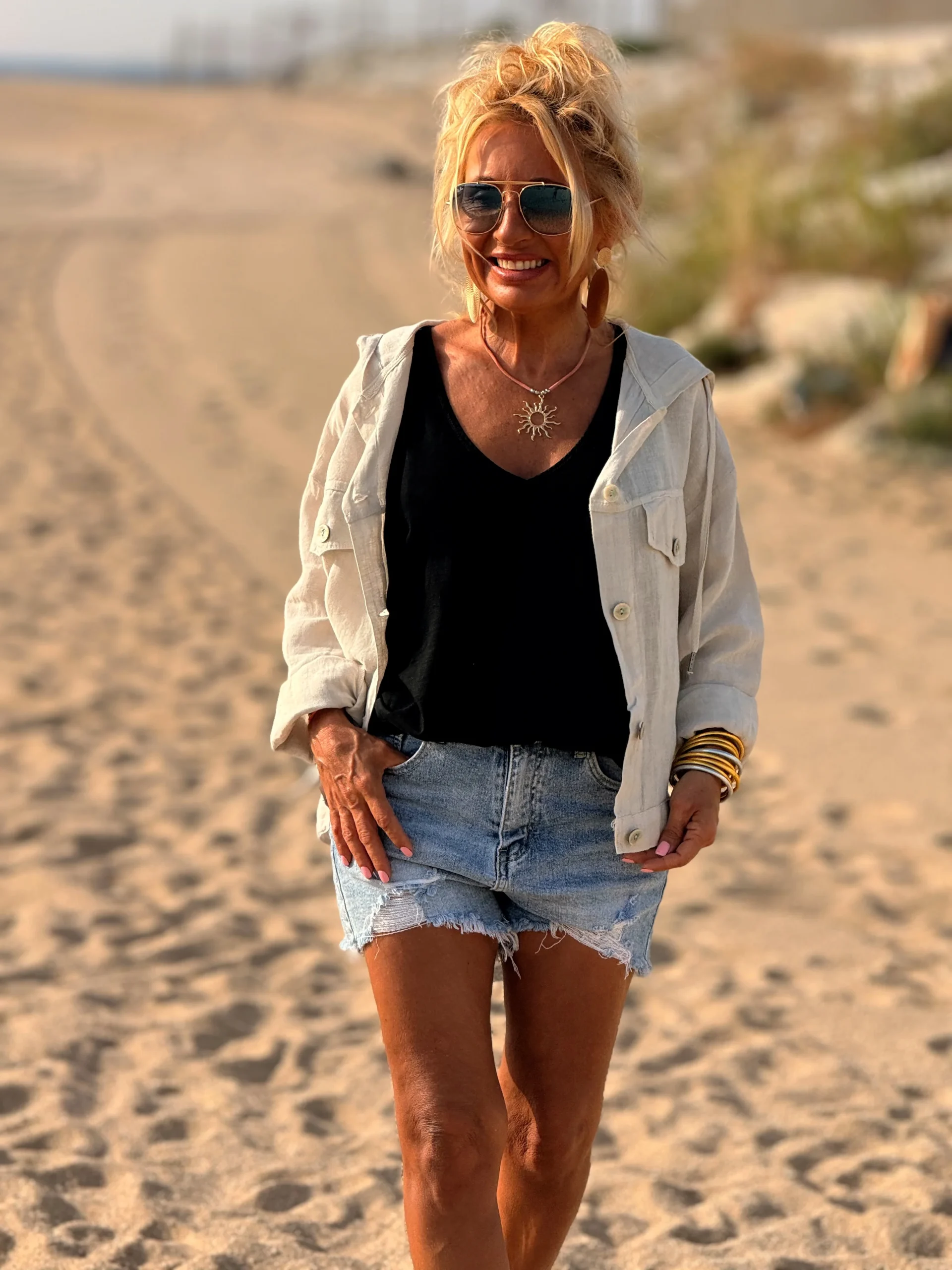 Perfecta para combinar con un short, jeans, pantalón, falda o incluso encima de un vestido. Es una excelente alternativa a la clásica chaqueta vaquera: más chic, más ligera, más natural.