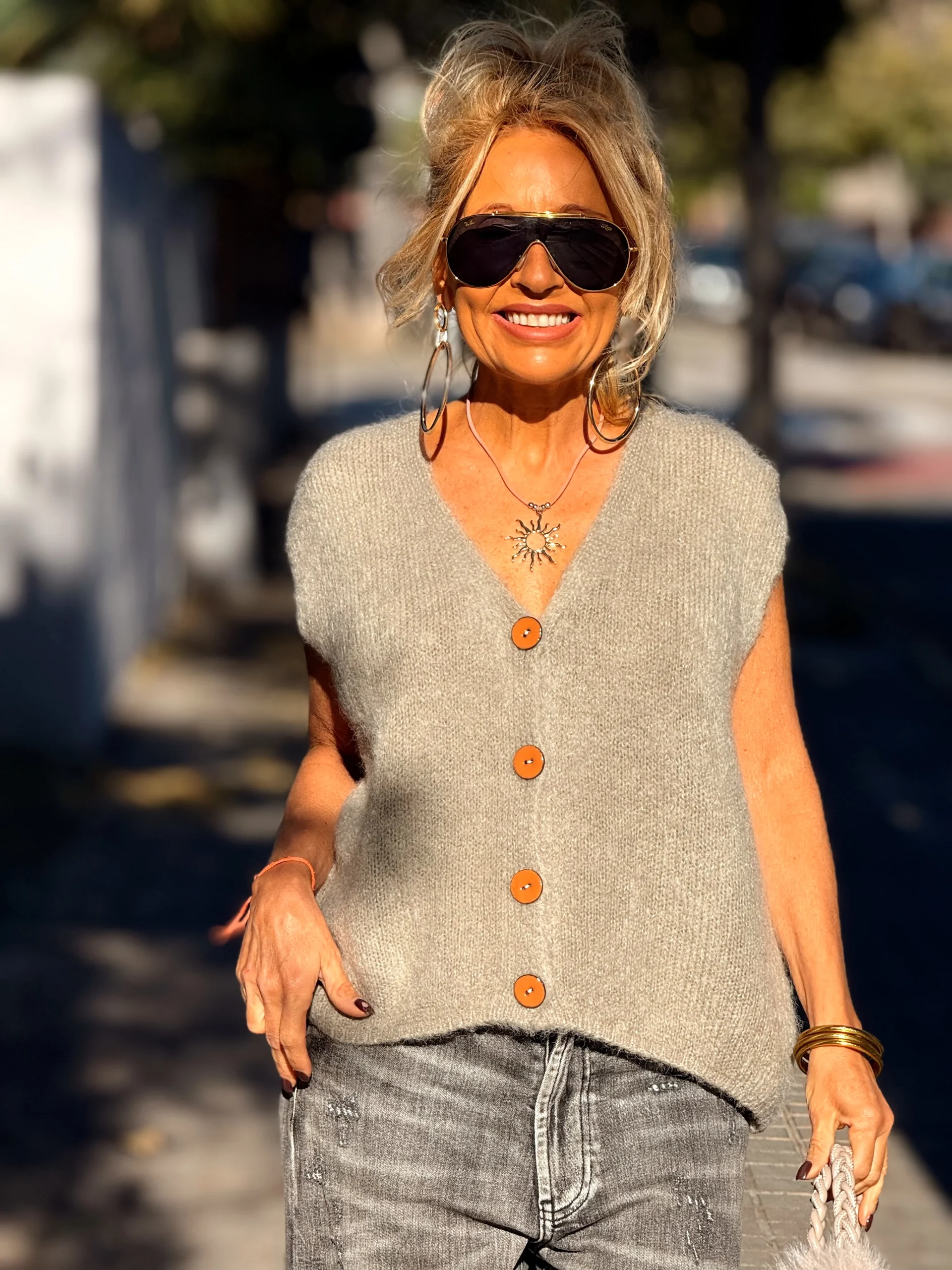 Chaleco de punto sin mangas, suave y cómodo, adornado con botones de coco que aportan un toque natural y refinado. Una prenda fácil de combinar e ideal para completar cualquier look.✨