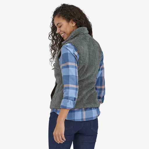 Una chompa versátil y extremadamente suave sin mangas de polar de pelo largo con un corte largo y entallado, cuelo alto y bolsillo laterales.