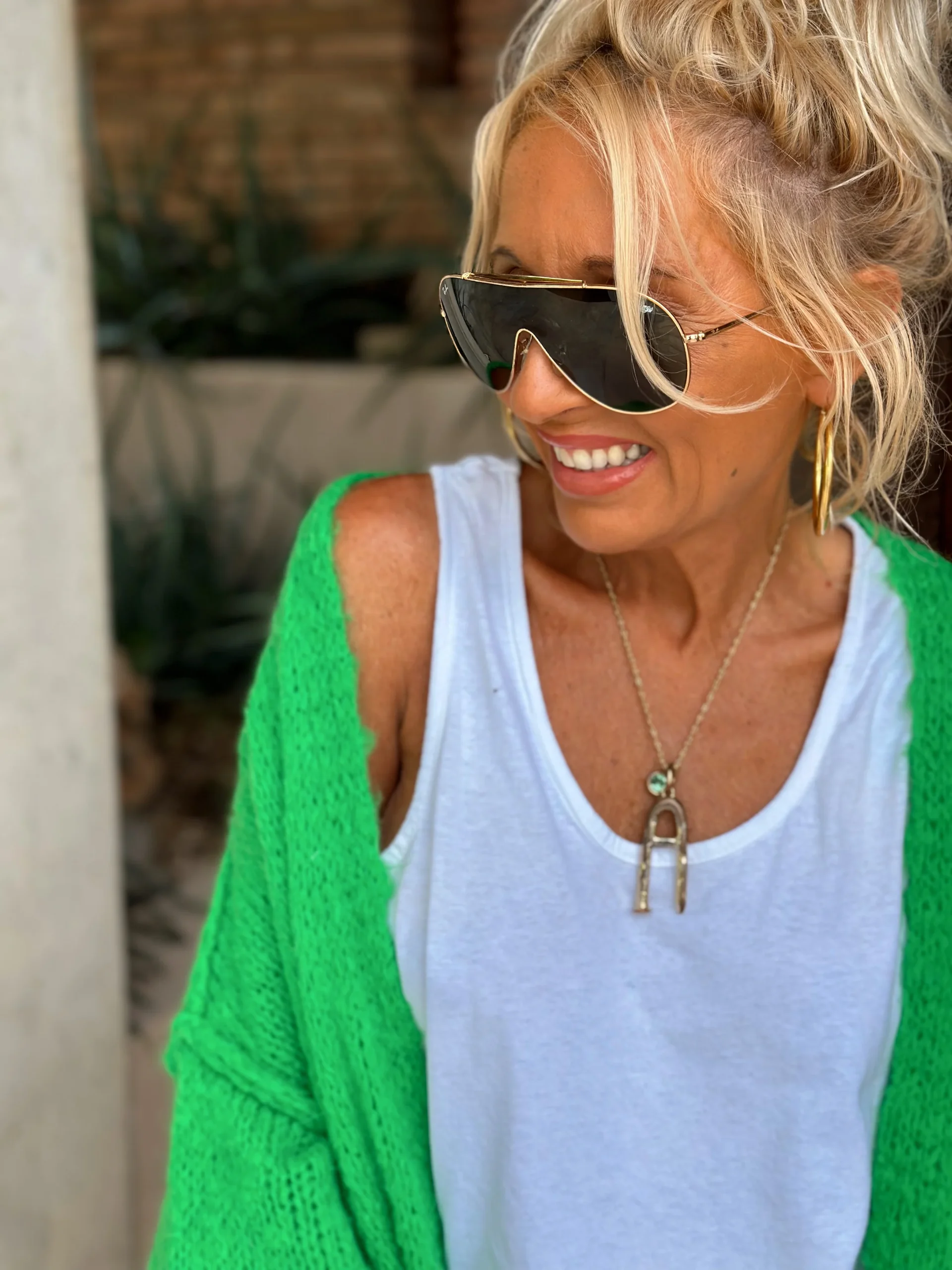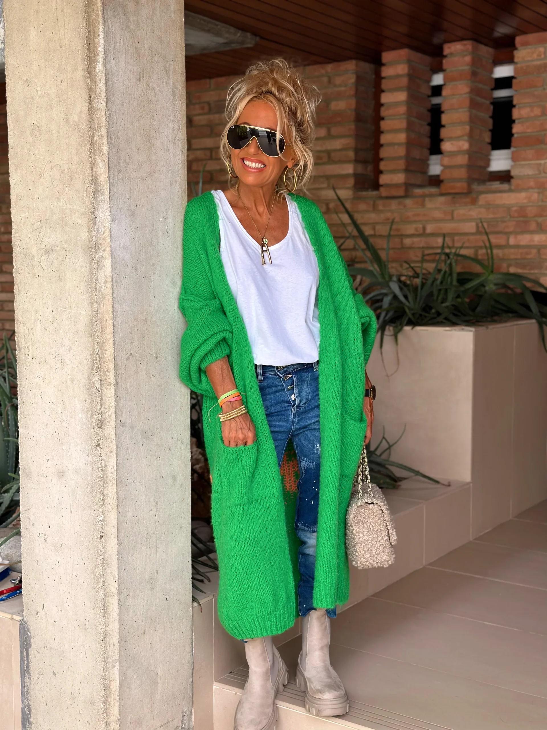 CHAQUETA DE PUNTO LARGA LOVE-PEACE MULTICOLOR
