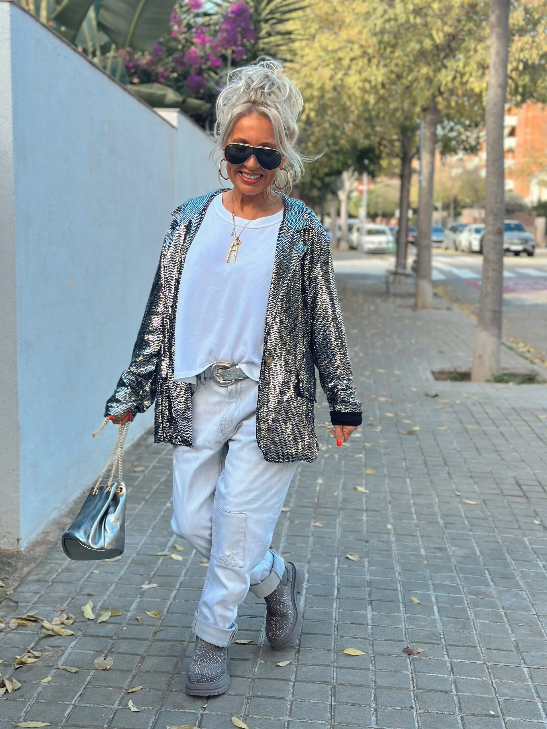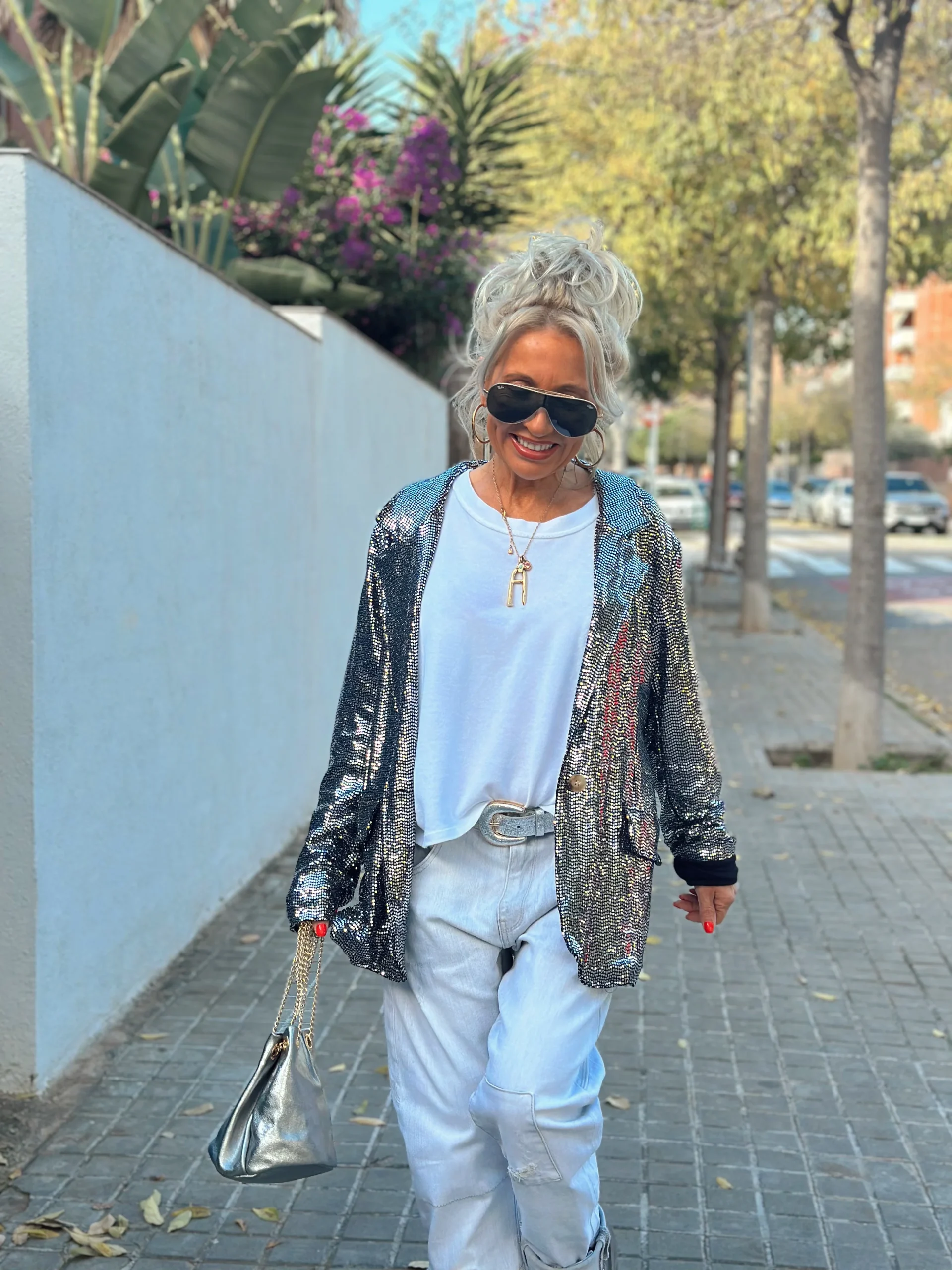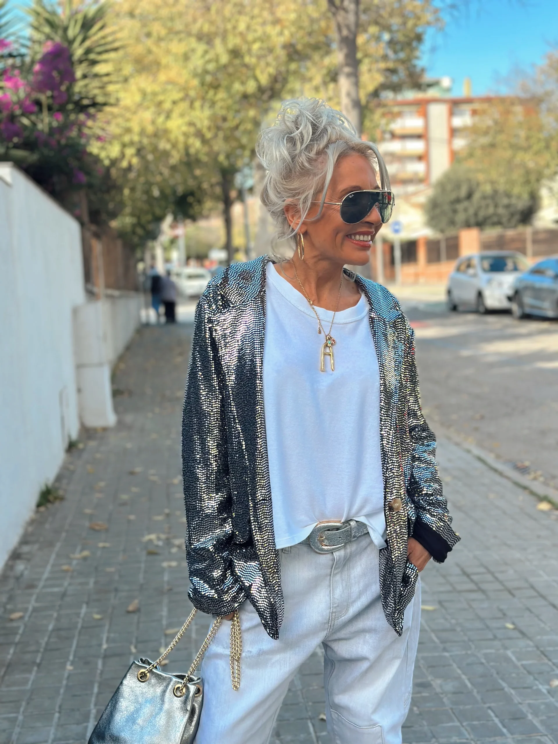 CHAQUETA LENTEJUELAS CRISTINA PLATEADA