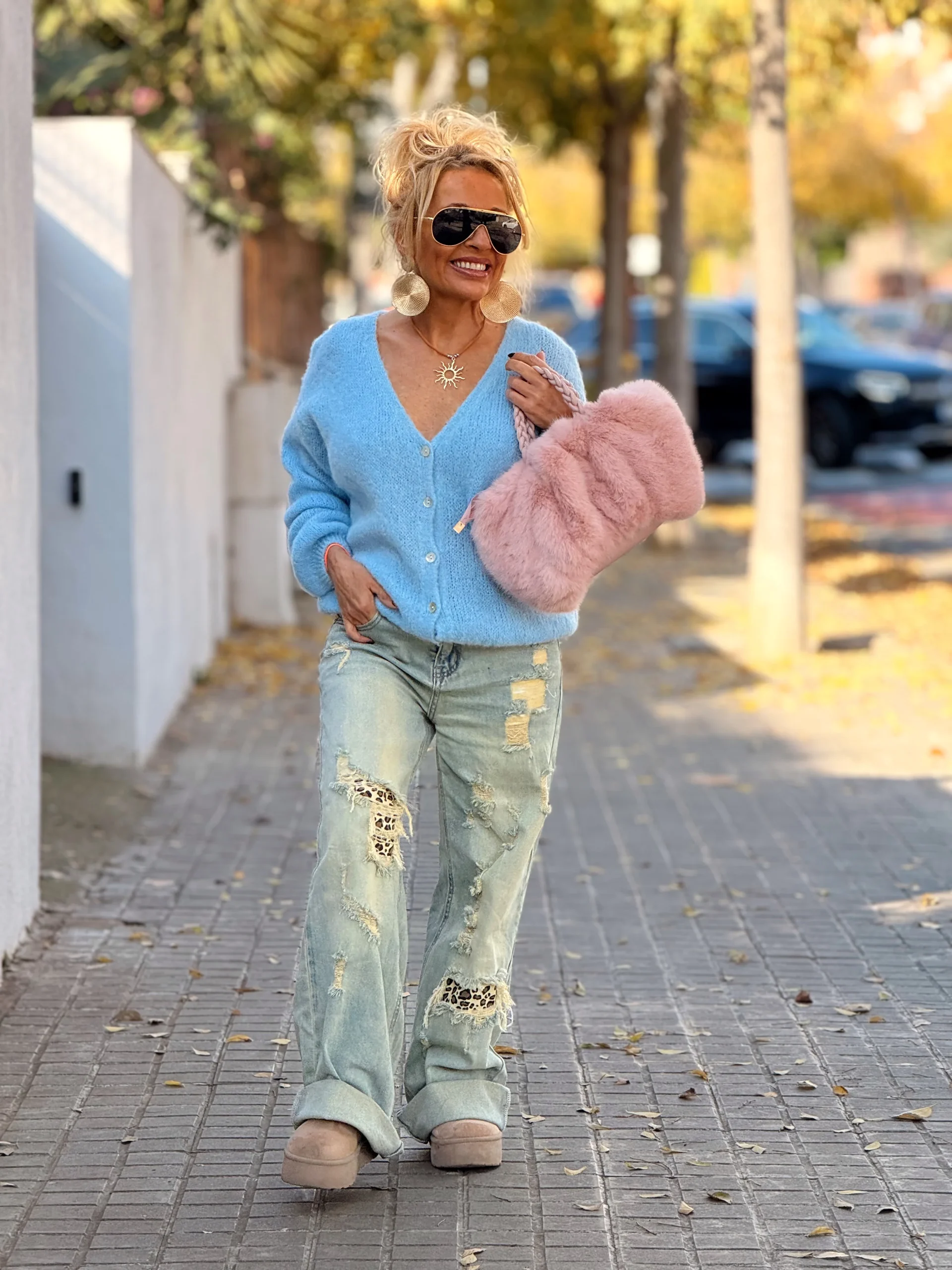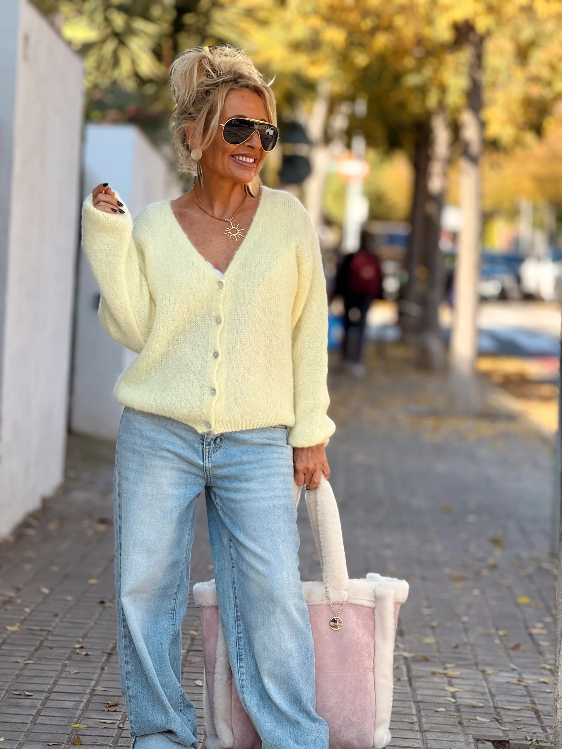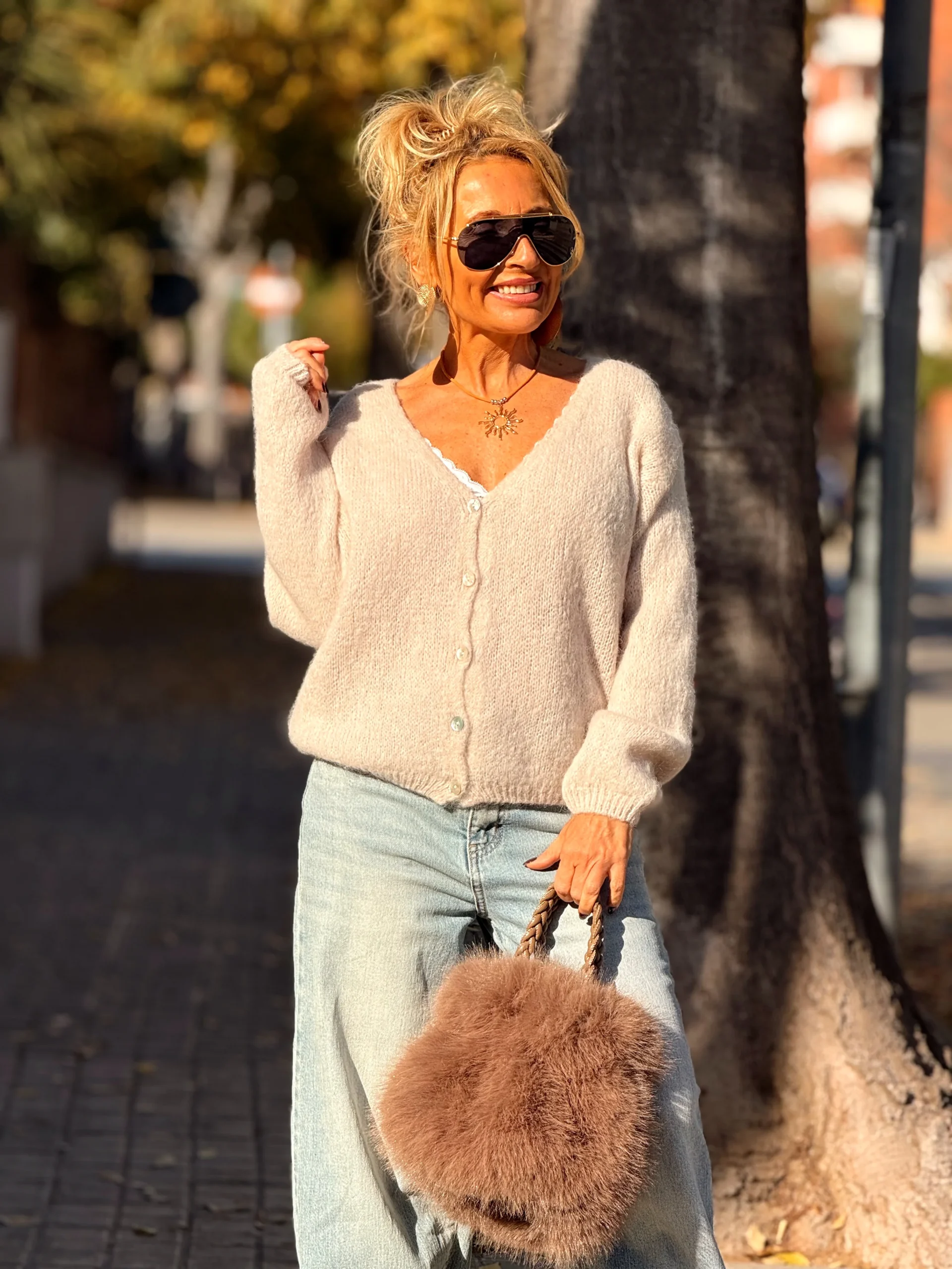 Cardigan suave y delicado, simplemente precioso. Un pequeño chaleco con botones de lana, encantador y lleno de detalles. No pica, es muy agradable al tacto y abriga perfectamente. Ideal para crear looks dulces, elegantes y cómodos en el día a día.✨