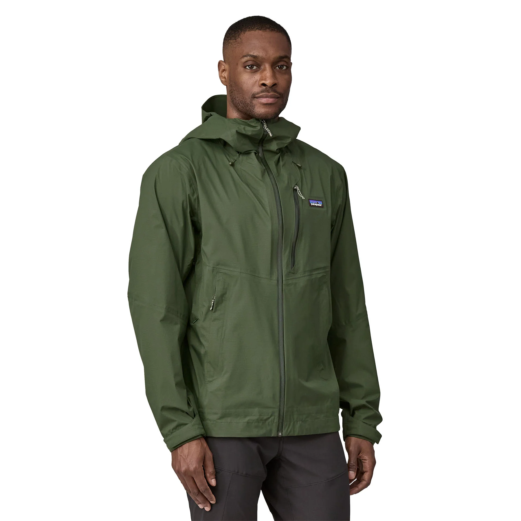 - Chaqueta que se guarda en bolsillo de la mano izquierda y cuenta con cierre de hook-and loop en los puños de la misma tela del resto de la chaqueta