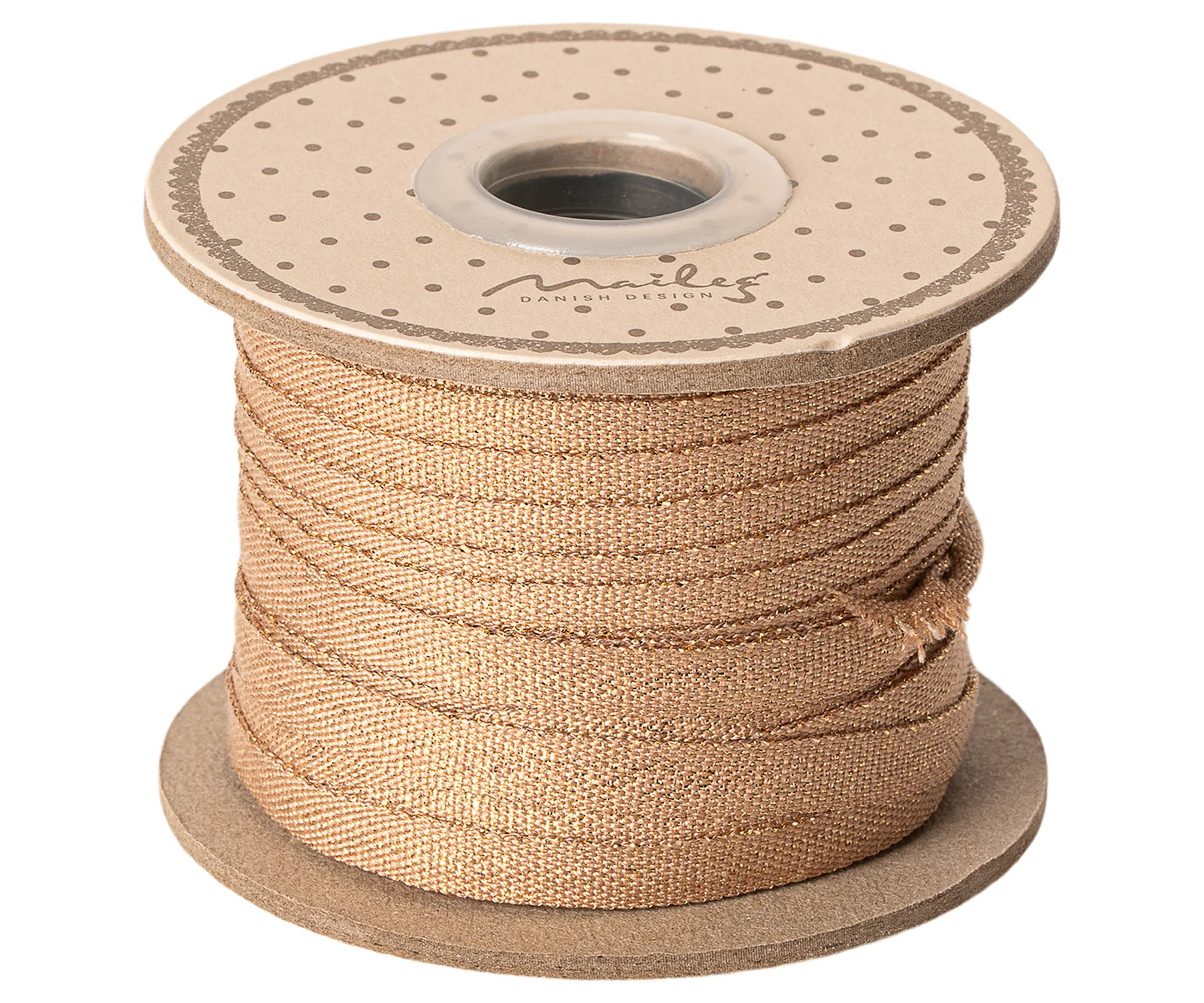 No te limites al papel de regalo, completa una presentación de lujo para tus regalos con la cinta perfecta. Estas bobinas contienen 25 metros de cinta de tela de gran calidad en un elegante color dorado, con destellos de brillo gracias al lúrex, perfecto para nuestros papeles de regalo.