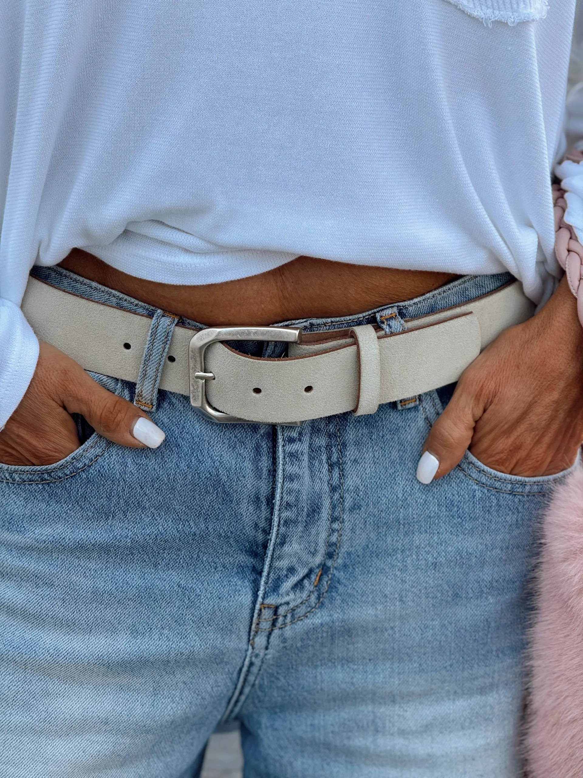Este cinturón California es simplemente magnífico. Está hecho de ante y puedes cambiar la hebilla por otra. Es espectacular y está disponible en tres tallas.✨
