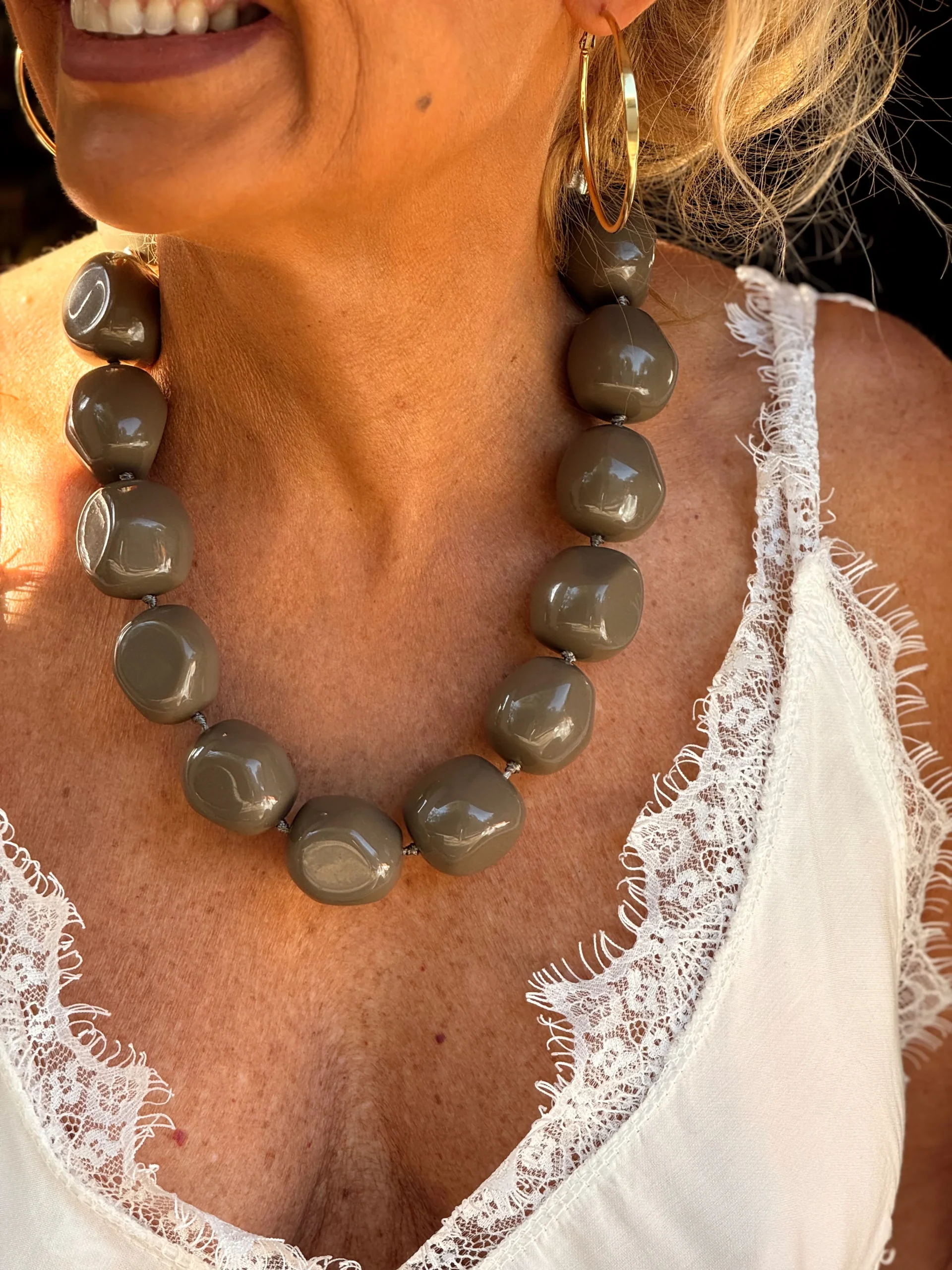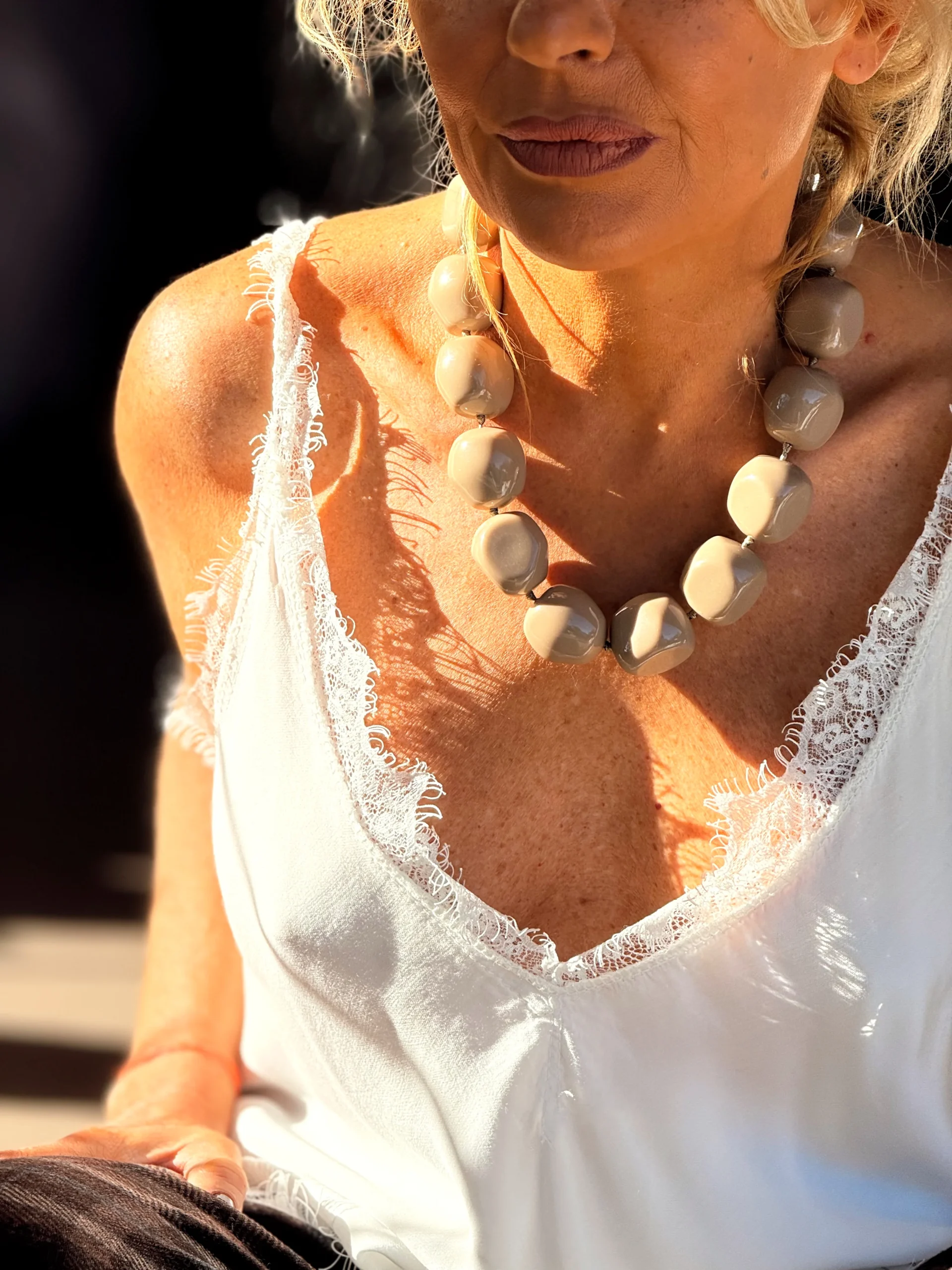 Collar espectacular con piezas grandes, simplemente precioso. Tiene un diseño llamativo y elegante que realza cualquier look. Disponible en los tres colores que tenemos. Es realmente muy, muy bonito y queda increíble puesto.✨