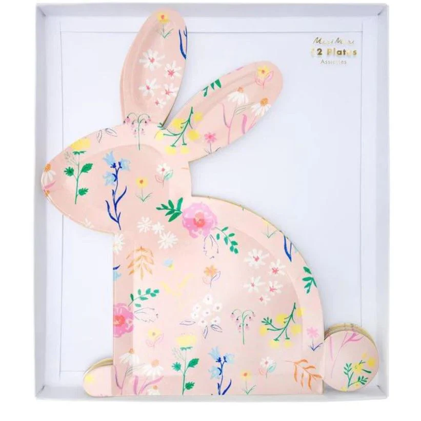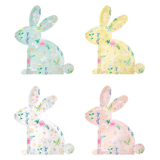 Añade encanto floral a tu mesa con estos bonitos platos con forma de conejitos y delicadas florecitas silvestres.
