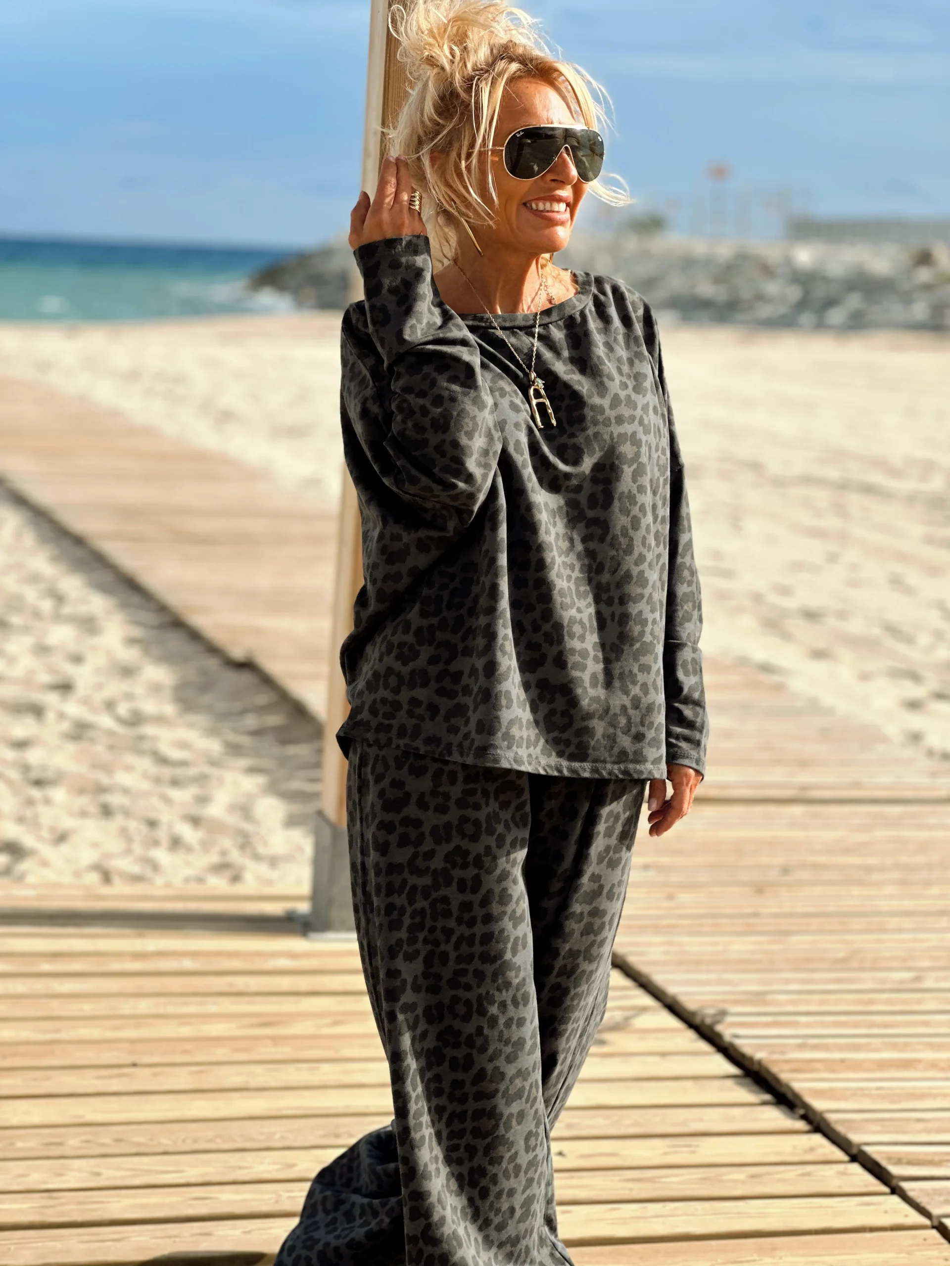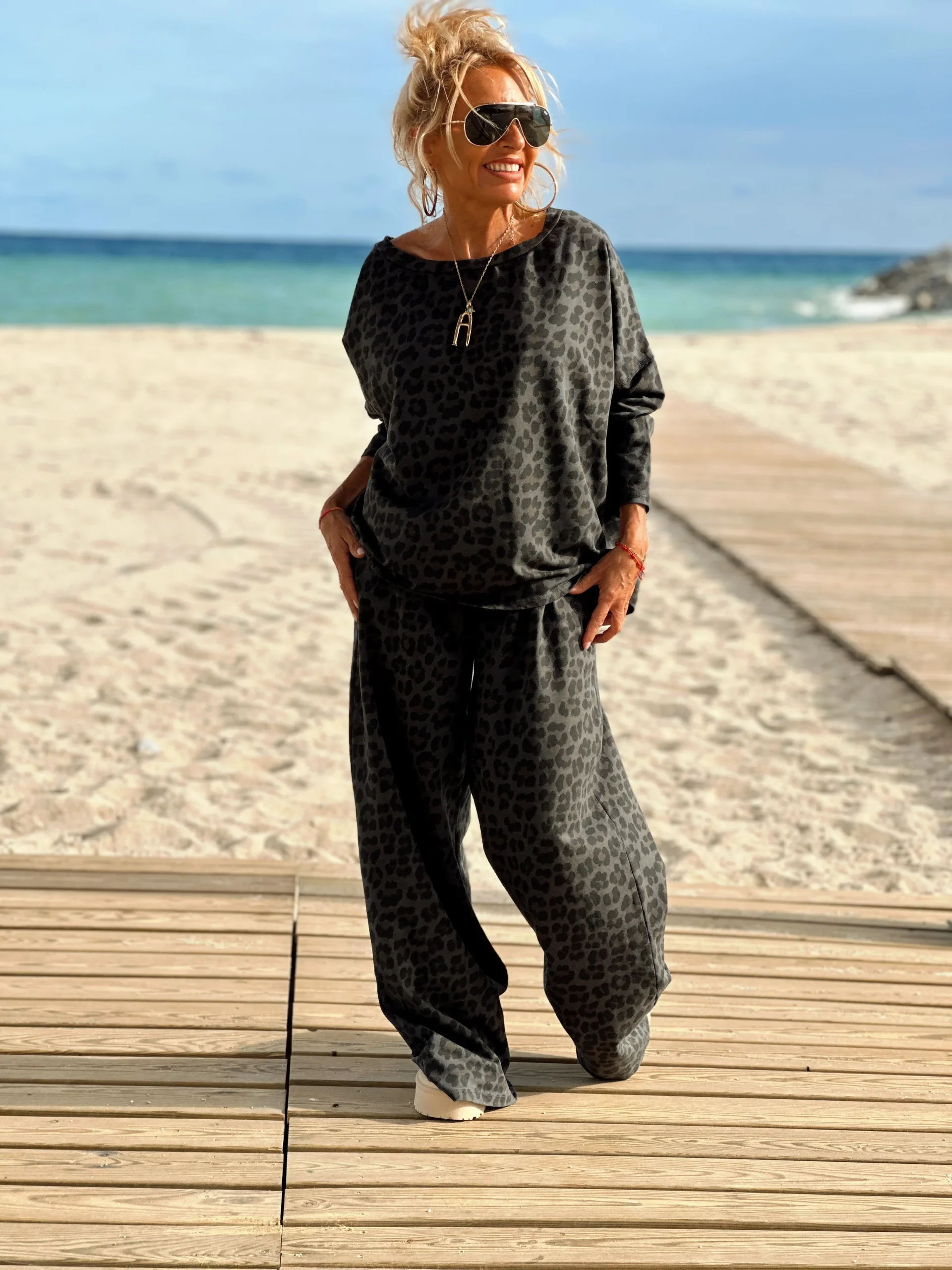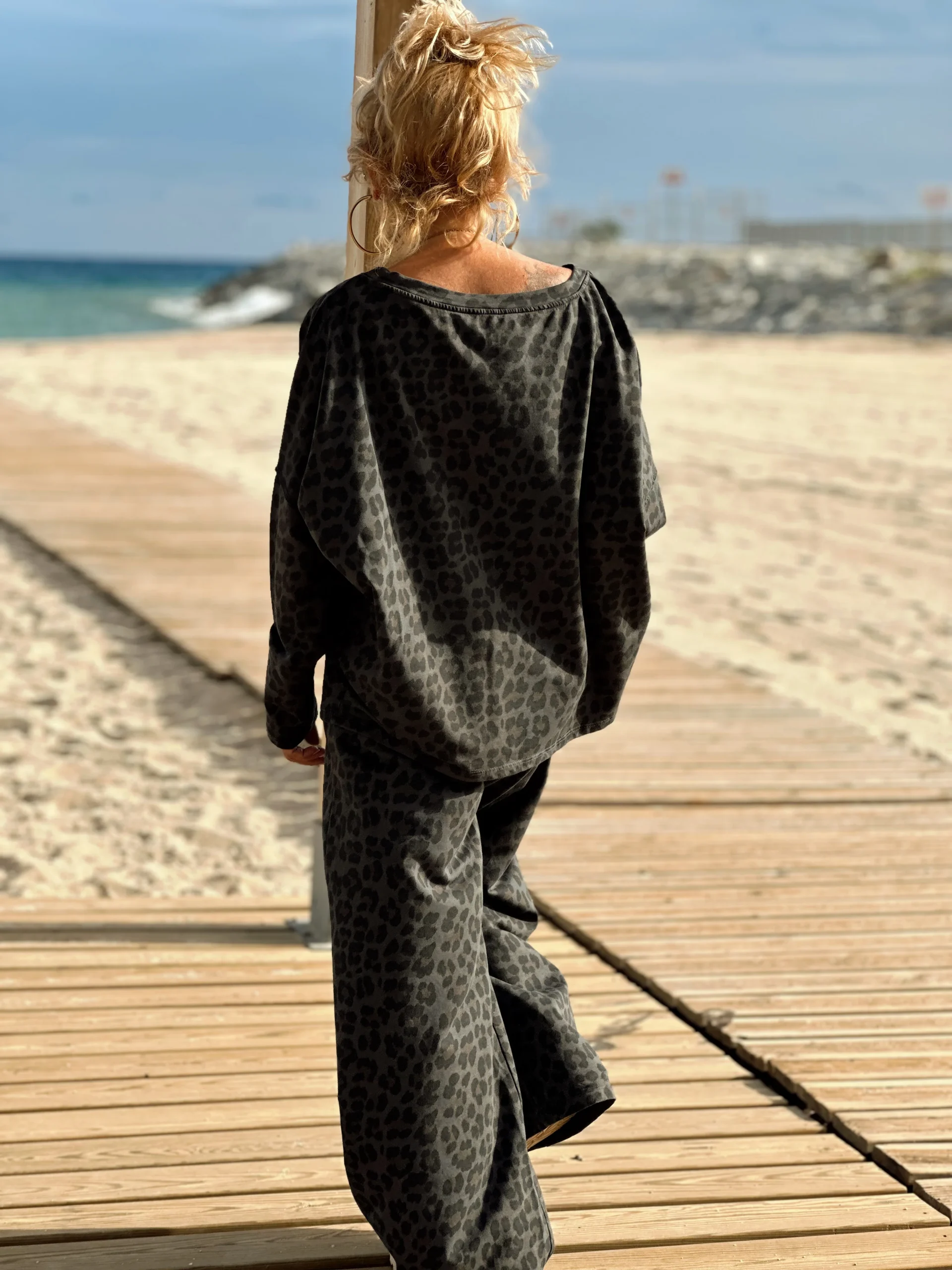 Este conjunto con pantalón/sweat en animal PRINT es simplemente magnífico, muy a la moda esta temporada. Es muy cómodo de llevar tanto con botas como con sneakers. ✨